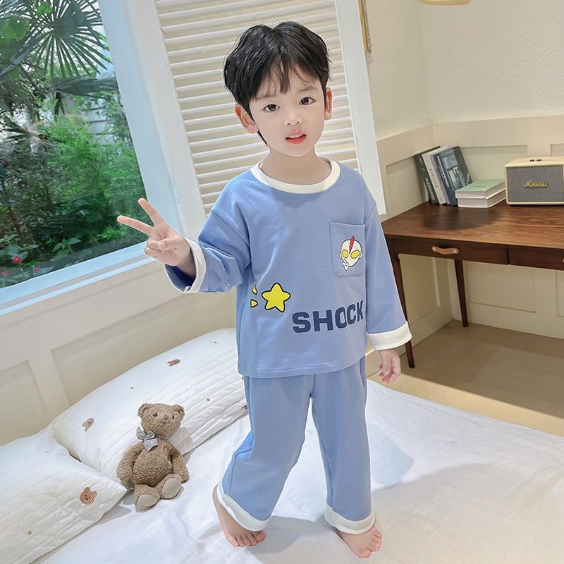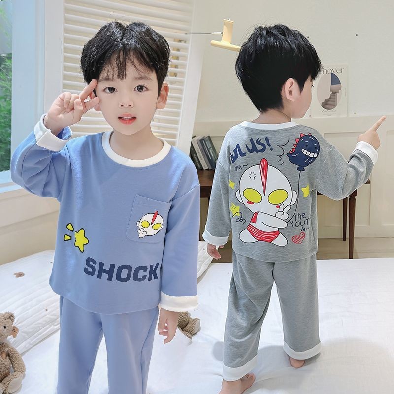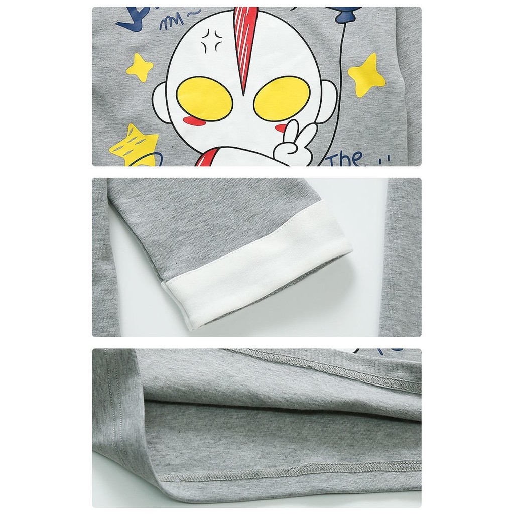ชายชุดนอนแขนยาวฤดูใบไม้ผลิฤดูใบไม้ร่วงสไตล์ใหม่แฟชั่นเกาหลีรุ่นรอบคอการ์ตูนอุลตราแมนพิมพ์เสื้อยืดด้านบนกางเกงสบายๆ ชุดลําลอง สอง @