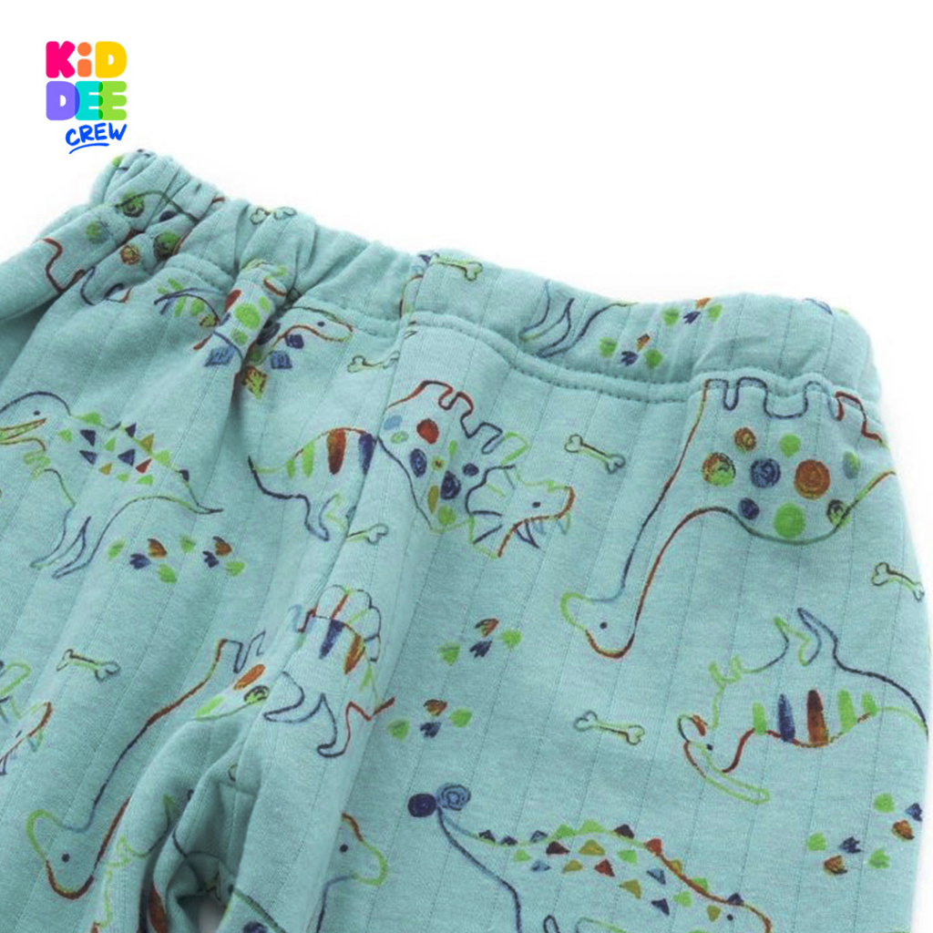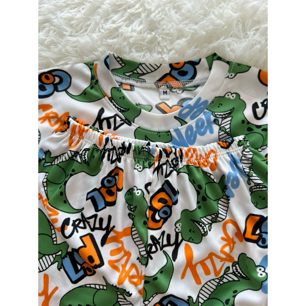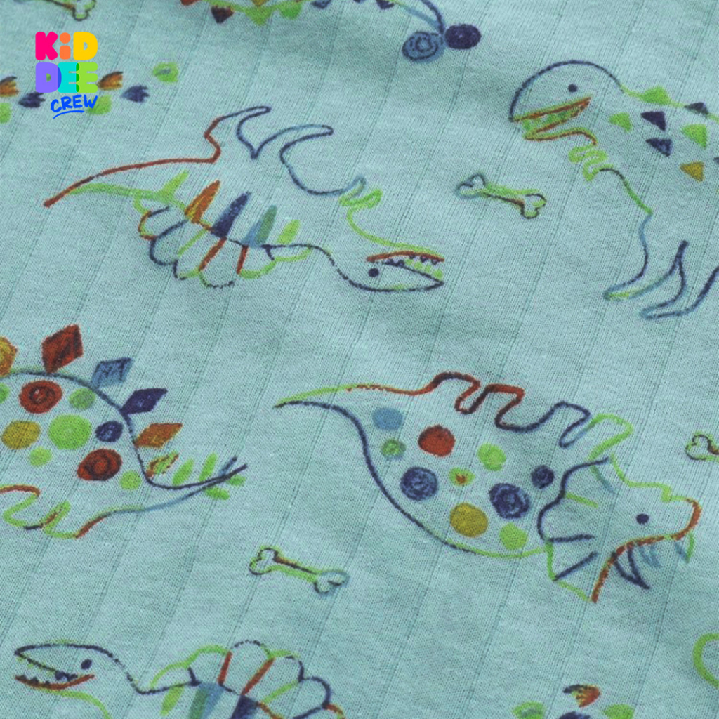 KiddeeCrew ชุดนอนเด็ก เขียวไดโนเสาร์สี เหมาะสำหรับอายุ 1-14 ปี