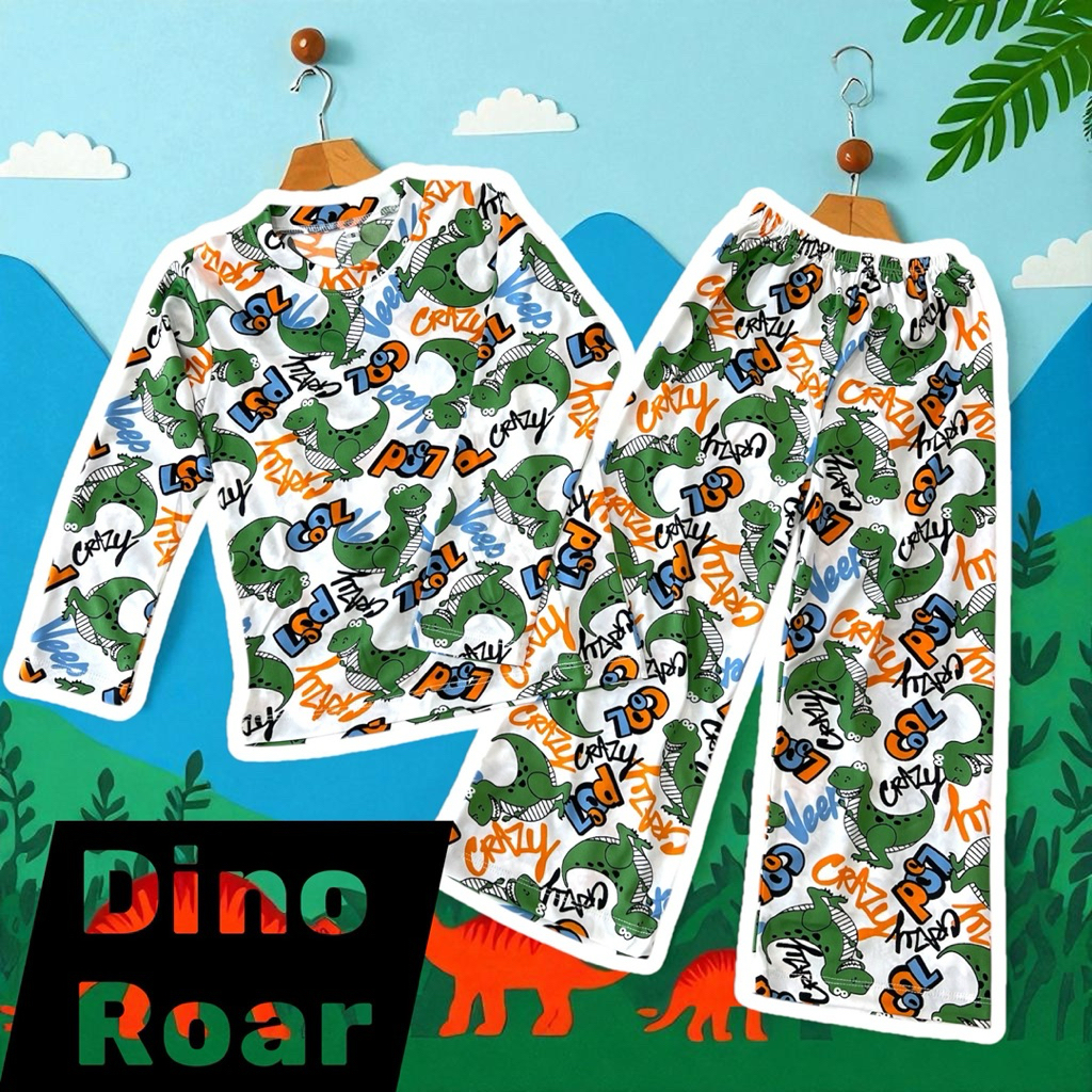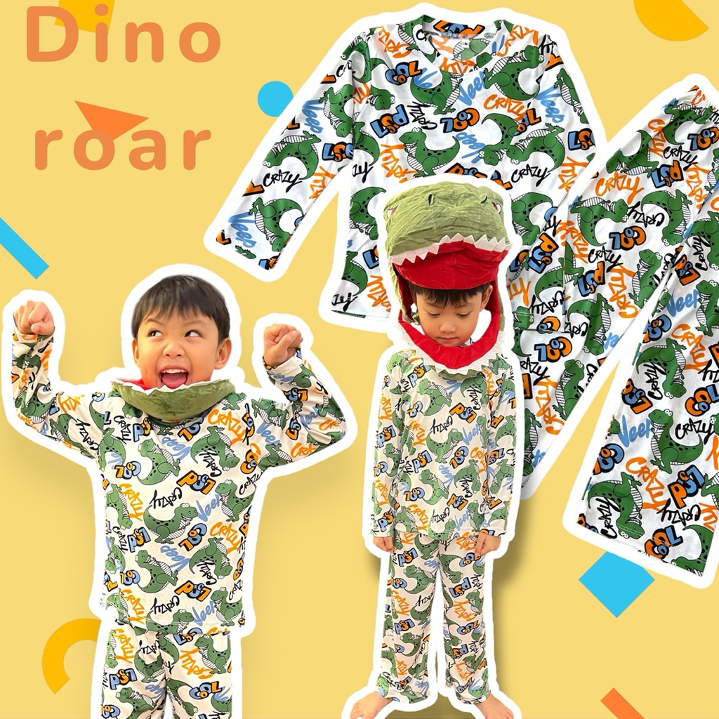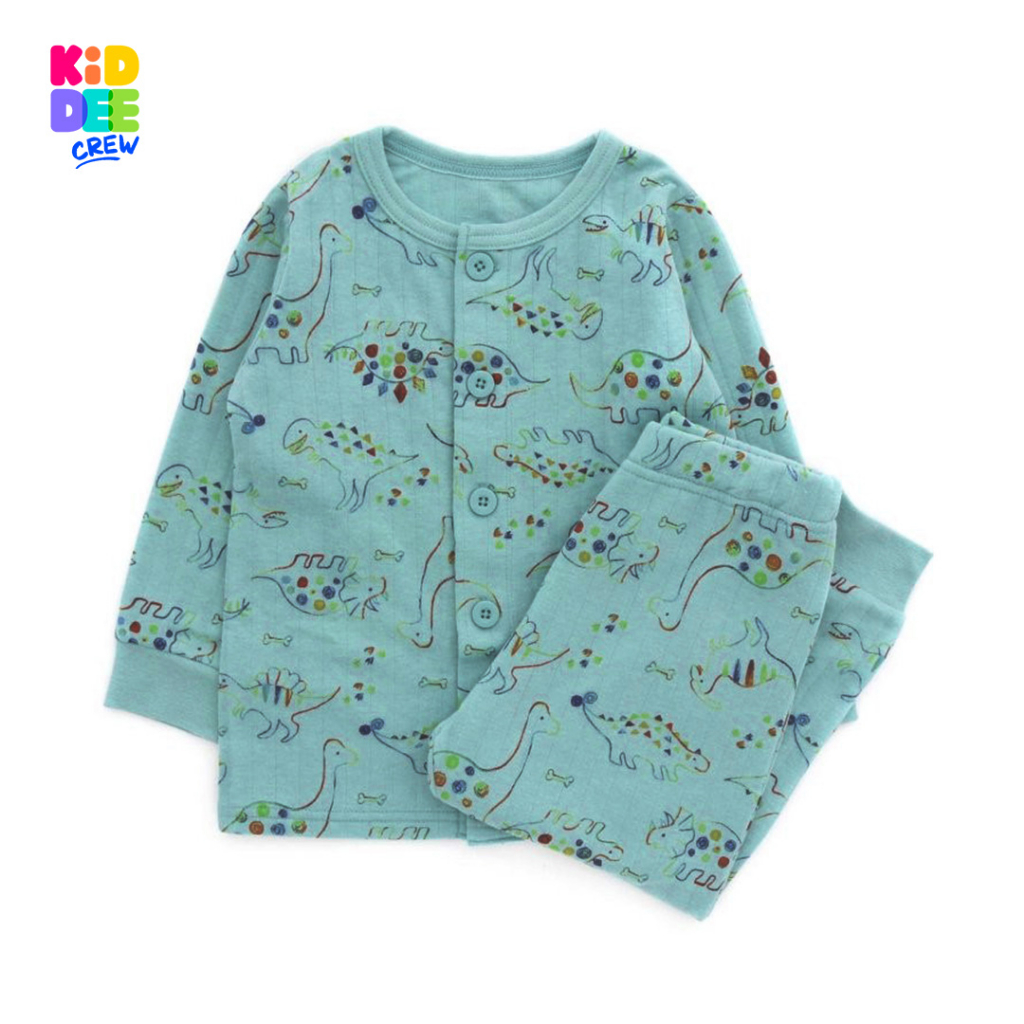 KiddeeCrew ชุดนอนเด็ก เขียวไดโนเสาร์สี เหมาะสำหรับอายุ 1-14 ปี