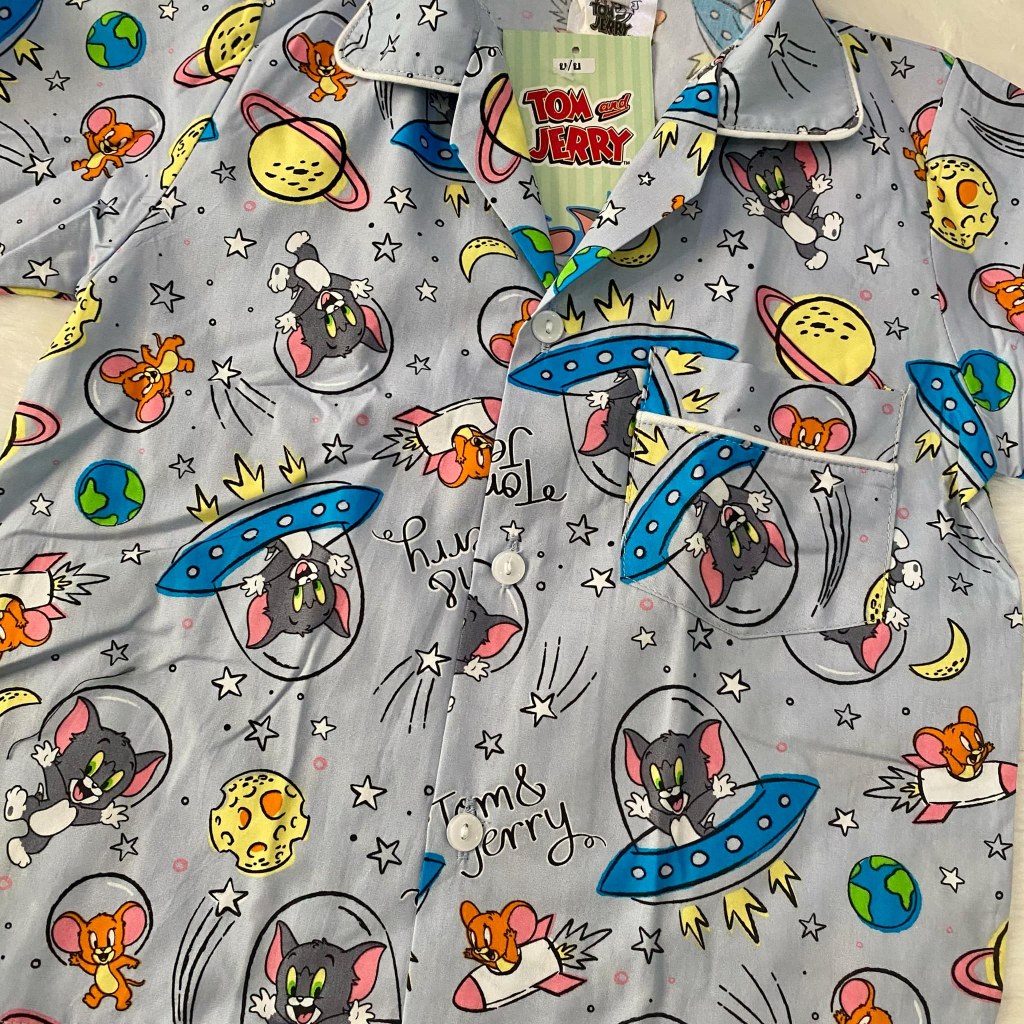【YAOEENH】100-180เซนติเมตรชายหญิงน่ารักการ์ตูนแขนสั้น ชุดลําลอง กลางเด็กใหญ่นุ่มระบายอากาศชุดนอนชุดสองชิ้นอ่าน
