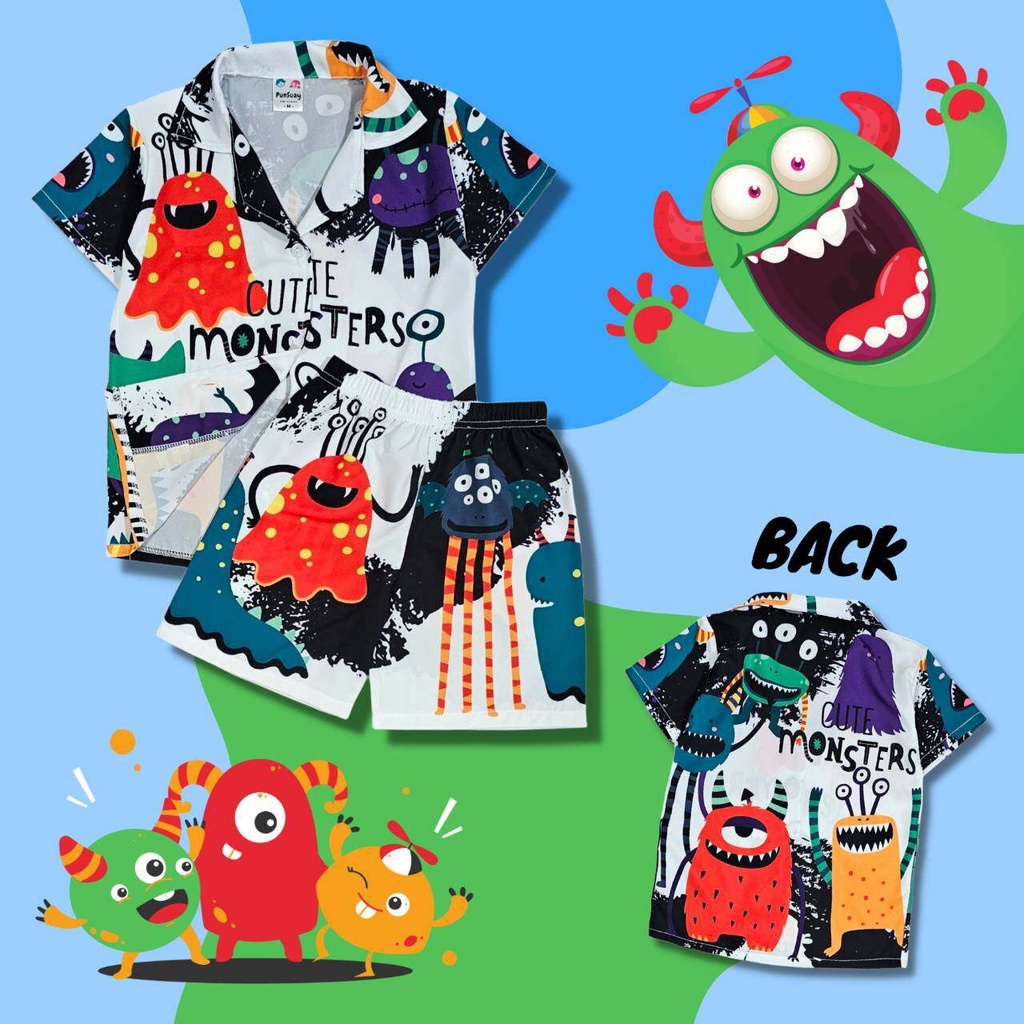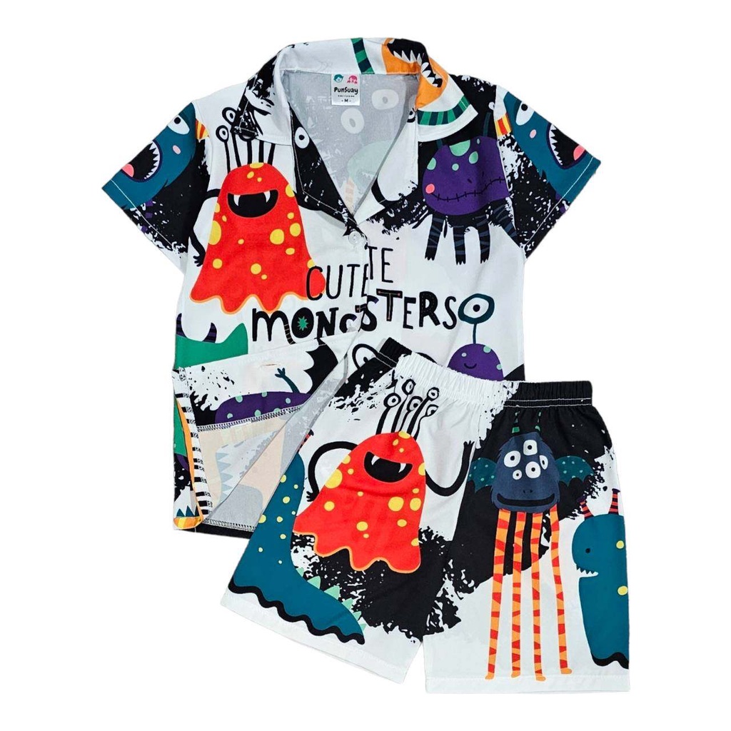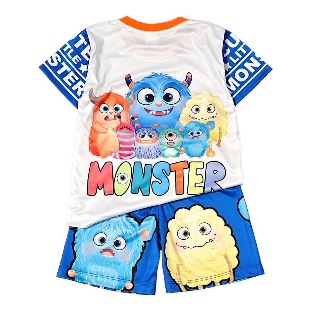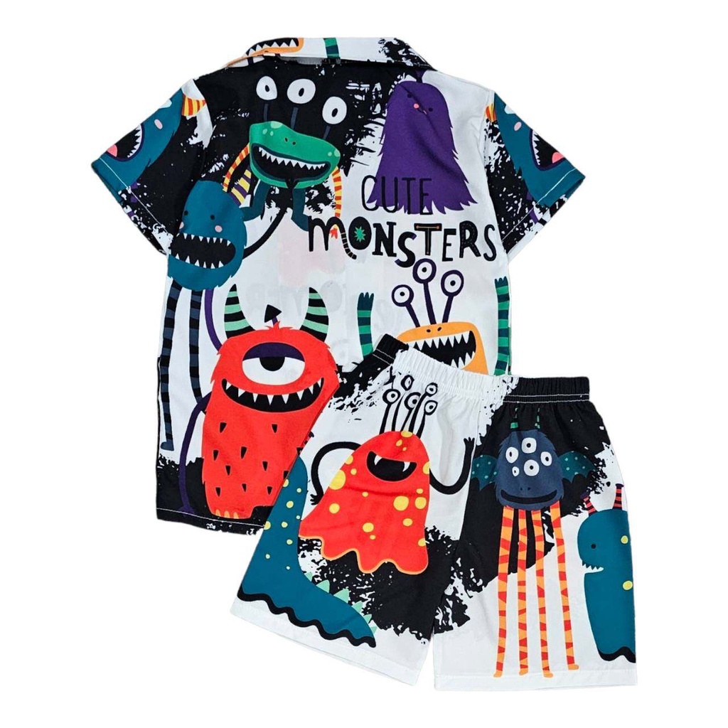 New set เสื้อผ้าเด็กผู้ชาย เสื้อยืดคอกลม กางเกงขาสั้น ตกแต่งกระดุมลายสัตว์น่ารัก
