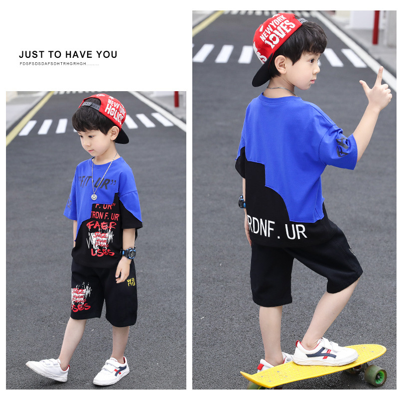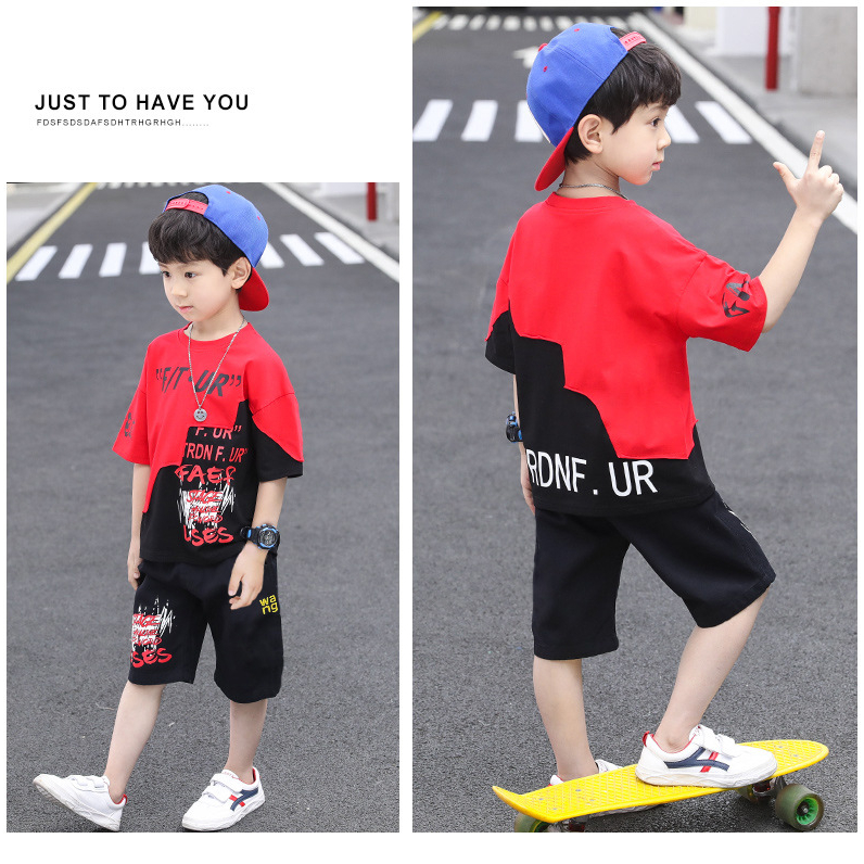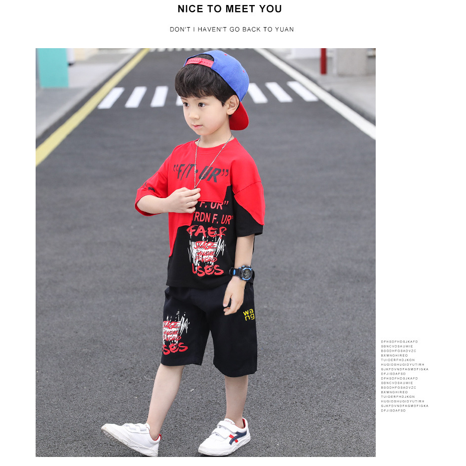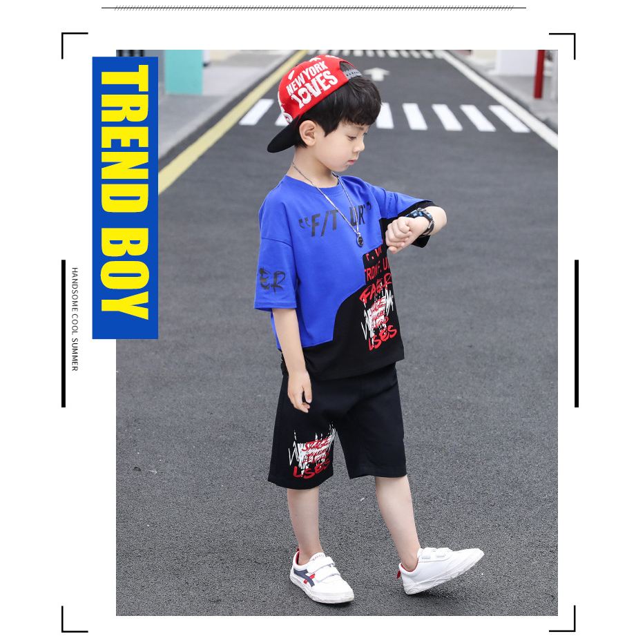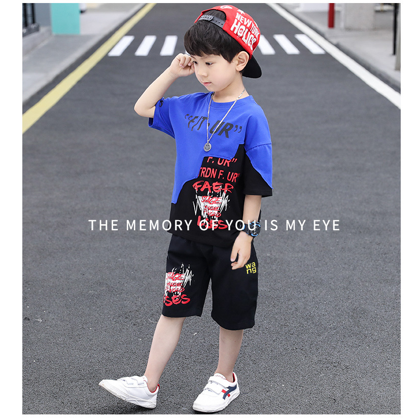 jqk ชุดเซ็ท2ชิ้นเด็กผู้ชาย เสื้อยืด+กางเกง (มีสี แดง/น้ำเงิน) รุ่น KK019
