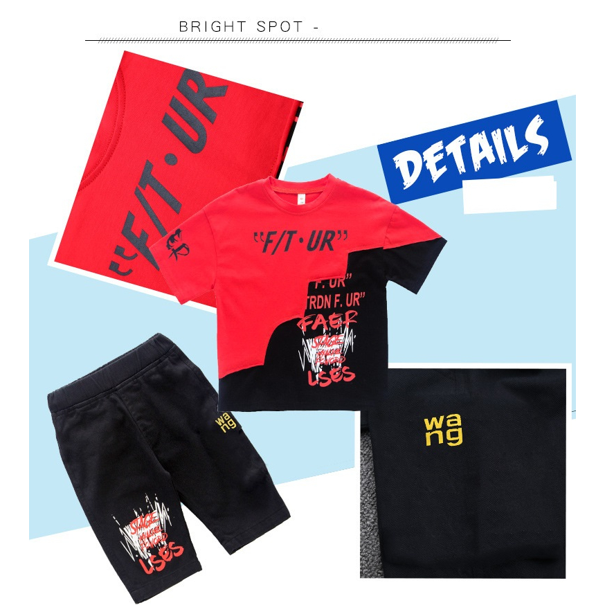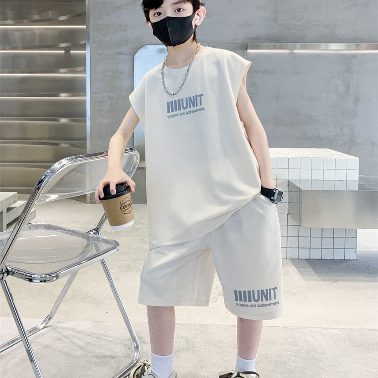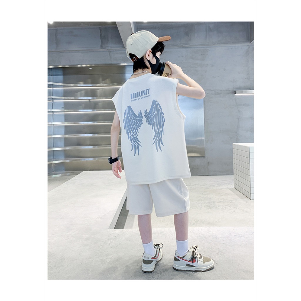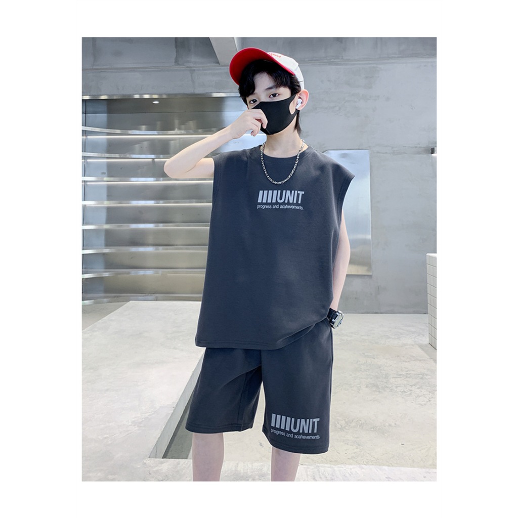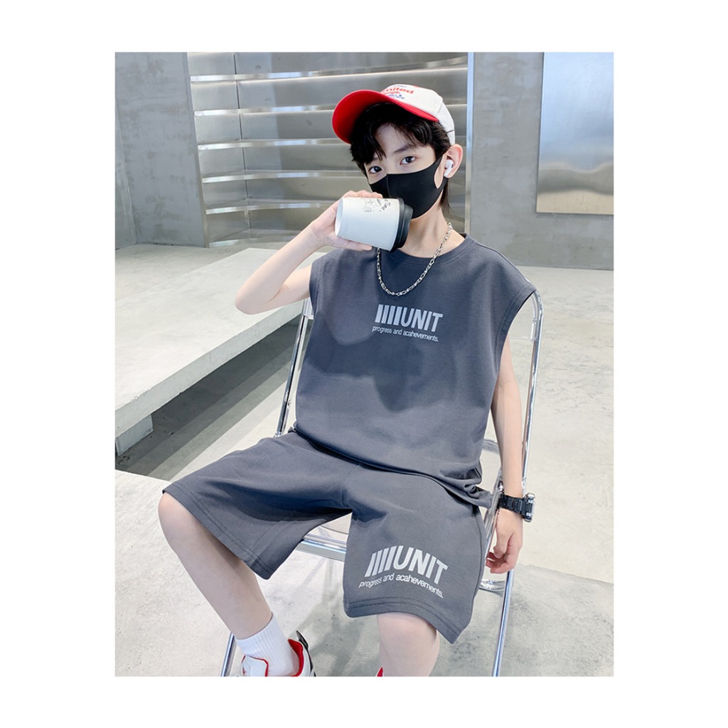 HU05 ชุดเสื้อกล้าม ใหม่เด็กเสื้อกั๊กชุดเด็กแขนสั้นสองชิ้นชุดเด็กชายและเด็กหญิงในช่วงฤดูร้อนเด็กวาฟเฟิลแฟชั่นเด็กสูทเสื้อ
