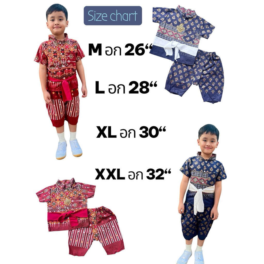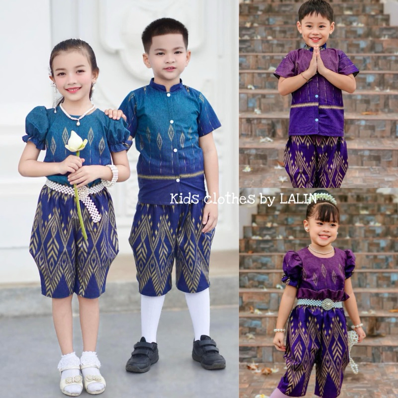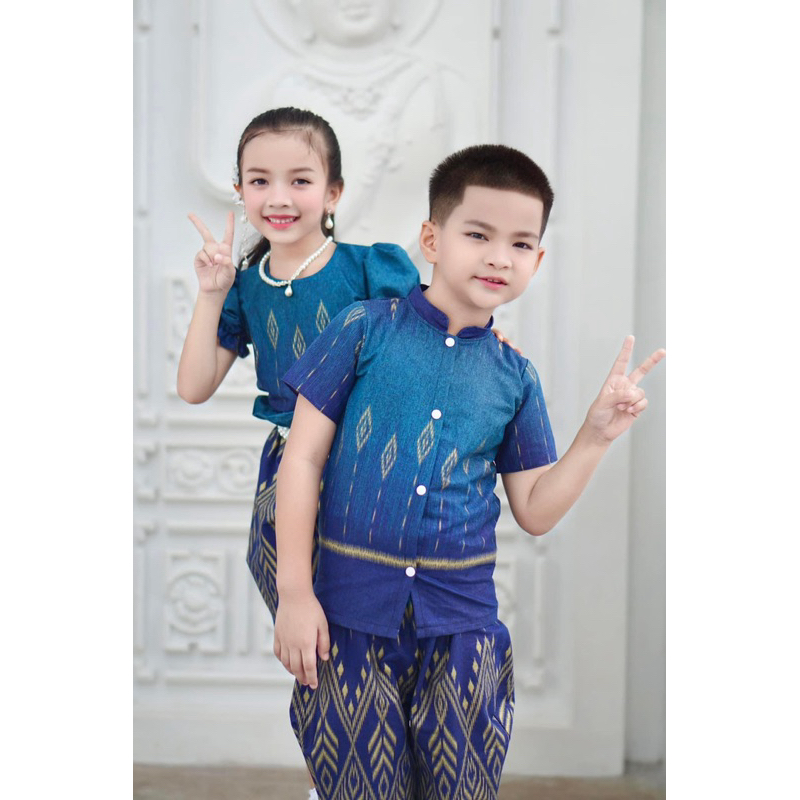 LL ชุดไทยประยุกต์ โจงกระเบน สำหรับเด็กผู้ชาย และเด็กผู้หญิง ผ้าพิมพ์ลาย