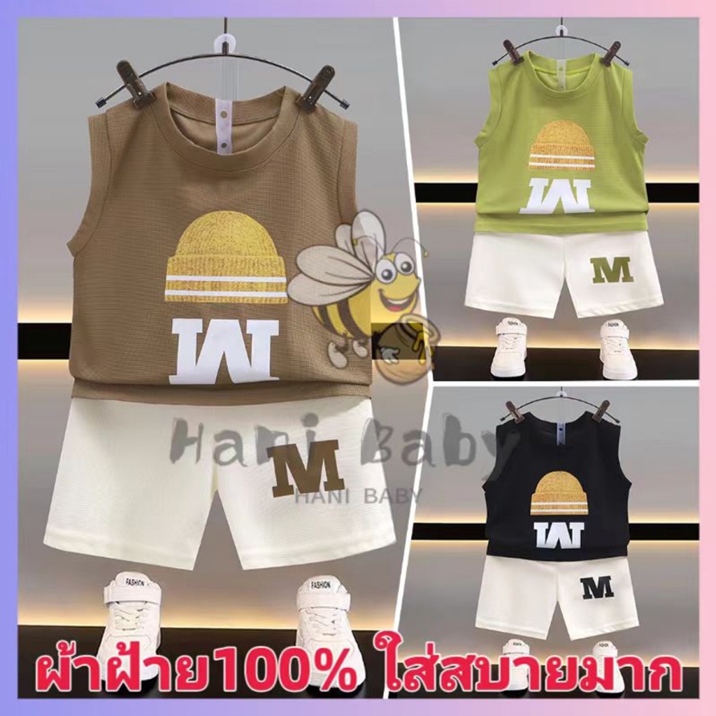 HANI BEE ชุดเซ็ท2ชิ้น เสื้อแขนกุด กางเกงขาสั้น ทรงหลวม สไตล์เกาหลี แฟชั่นฤดูร้อน