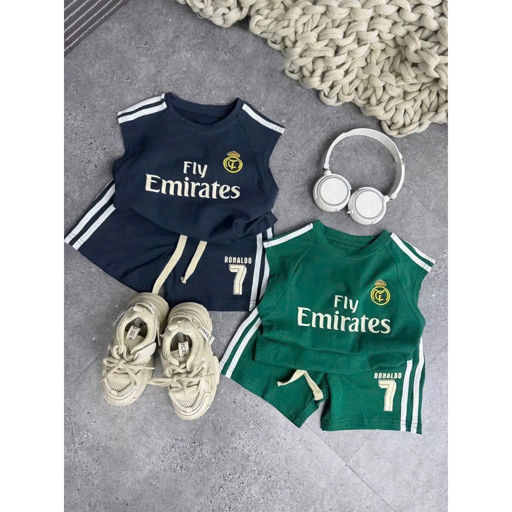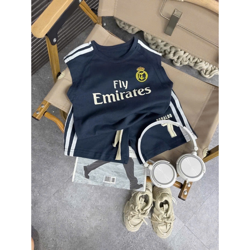 KIDSZONE ชุดเซ็ต 2 ชิ้นเด็กผู้ชาย แขนกุด+กางเกงขาสั้นเอวยางยืด รุ่น A3045