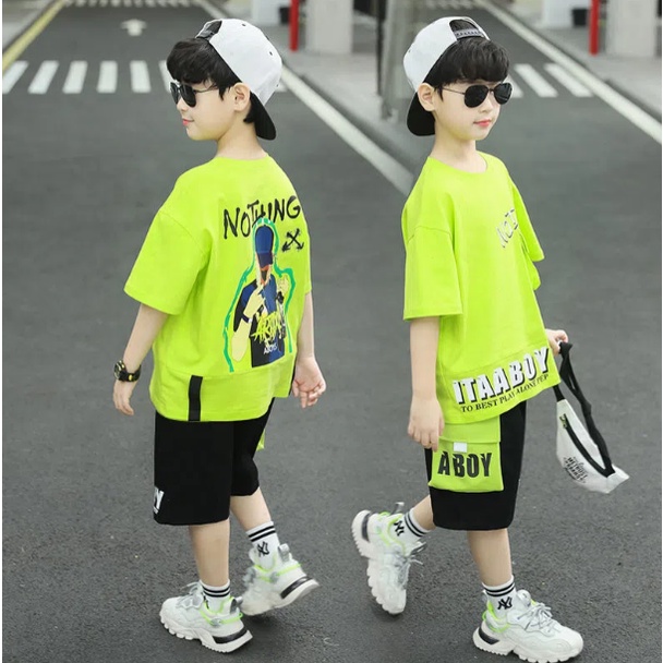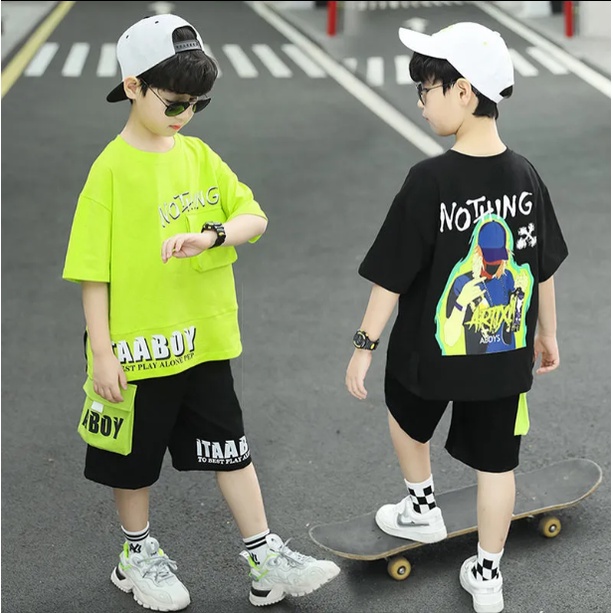 Soffny Boy ชุดเสื้อยืด + กางเกงขาสั้นกางเกงชายเสื้อเสื้อผ้าเด็กทารกวันเกิดงานแต่งงาน Baby Shower ญี่ปุ่นเกาหลีสไตล์ Baju Budak Lelaki Murah