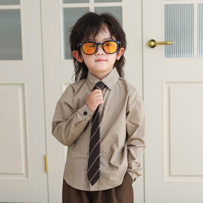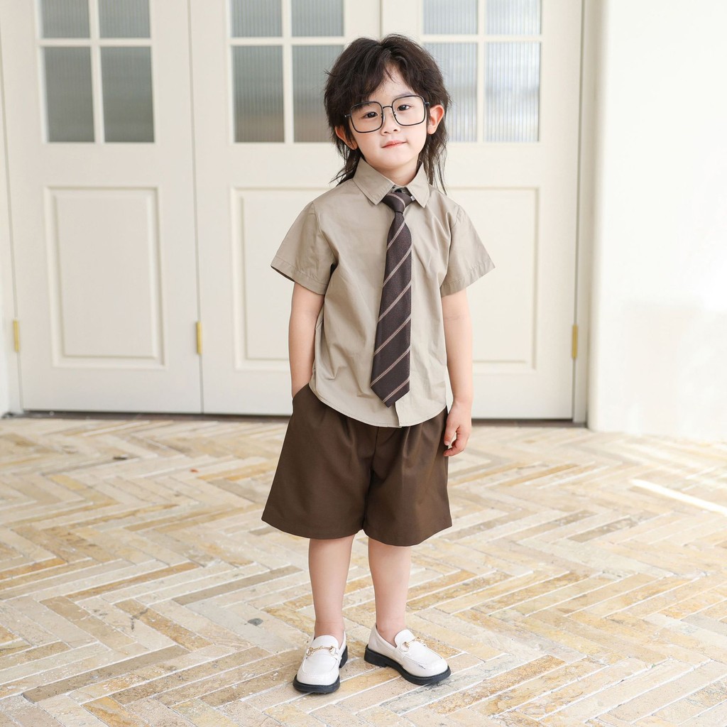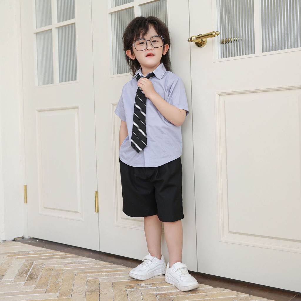 PiPiชุดสุรัสติย์เด็กชายกับสะพาน| เสื้อเชิ้ตสีฟ้าเบาและคาคี+กุญแจลายสาย+กางเกงขาสั้นสะพาน | เหมาะสำหรับวันสำเร็จการศึกษา、ปาร์ตี้วันเกิด การชุมนุมครอบครัว