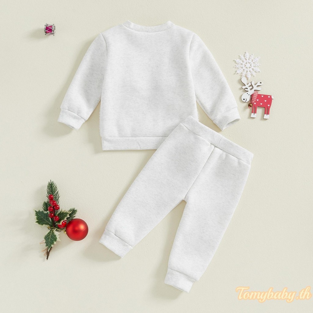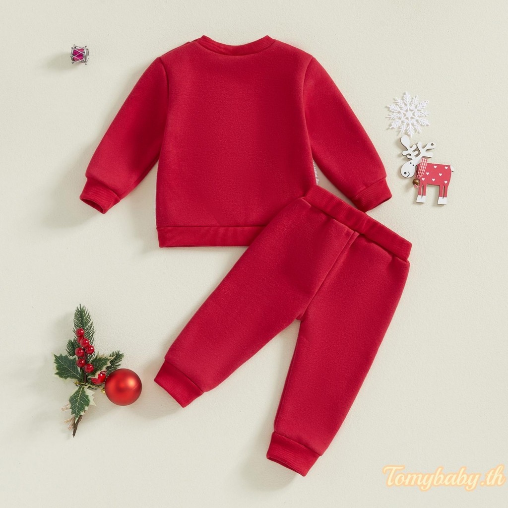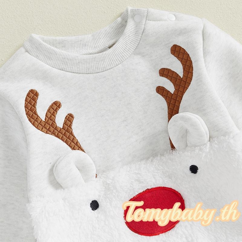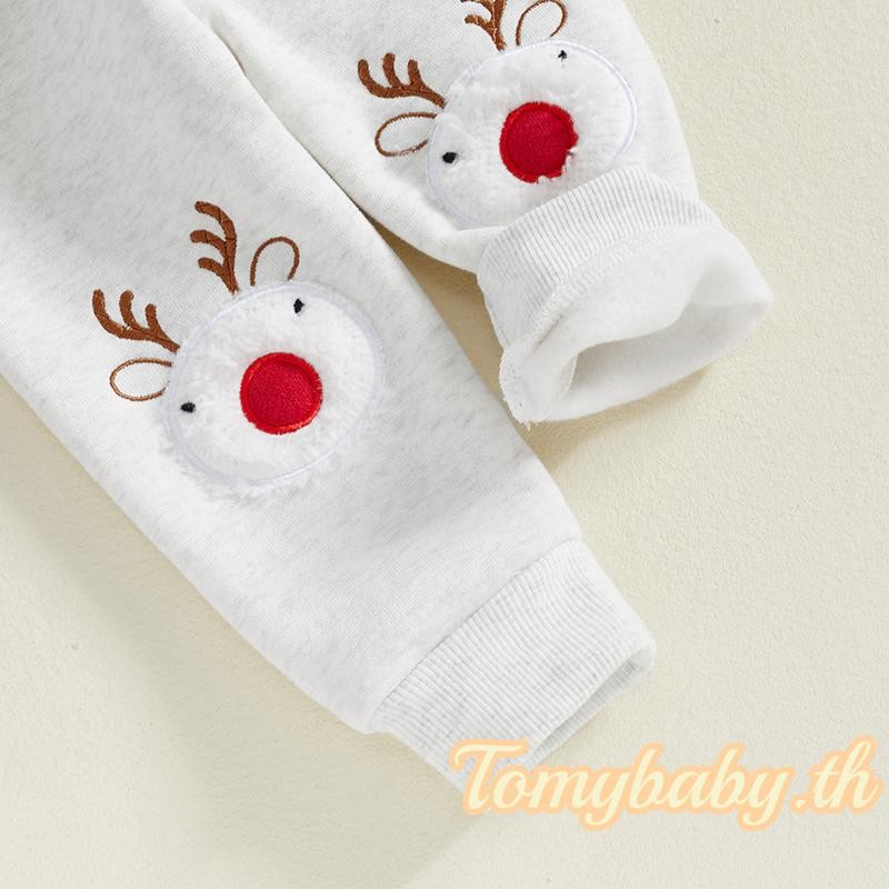 Tomybaby-ชุดคริสต์มาสสำหรับเด็กชาย เสื้อสเวตเตอร์แขนยาวปักลายกวางเรนเดียร์ + กางเกงเอวยางยืด 2 ชิ้น
