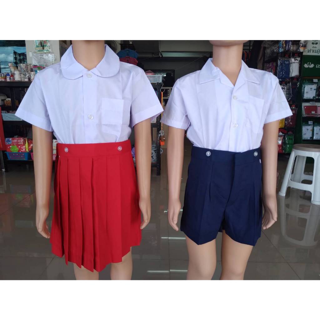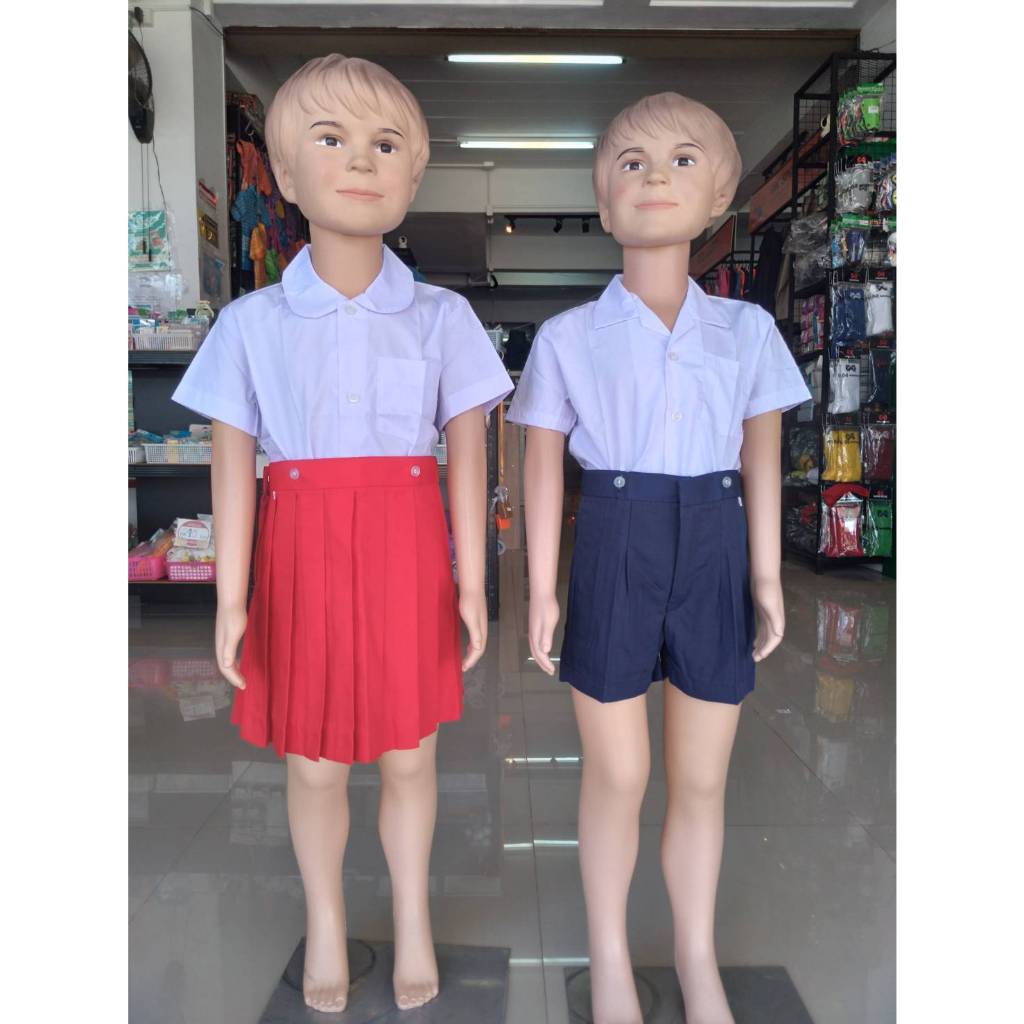 sale 149 บาท ชุดนักเรียนอนุบาลเอวดุม ชาย หญิง สมภาพร ละมุด การ์ตูน สีแดง สีกรมท่าอ่อน ผ้าดีมาก
