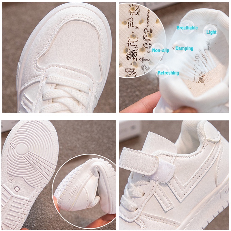 Borammy QQS125 รองเท้ากีฬาเด็กผู้ชายและเด็กผู้หญิงสีขาว (ความยาวเท้า +1.5)