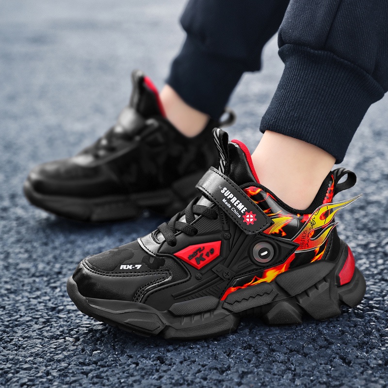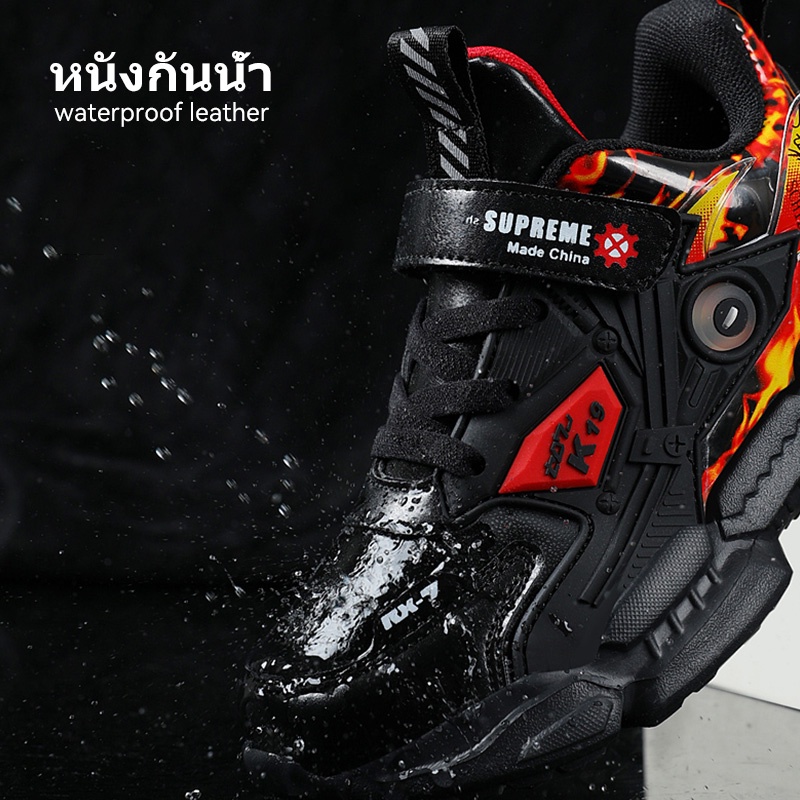 2024 แฟชั่น ตะขอและห่วง กันน้ำ หนัง รองเท้าผ้าใบเด็กผู้ชาย รองเท้าเด็กผู้ชายโต