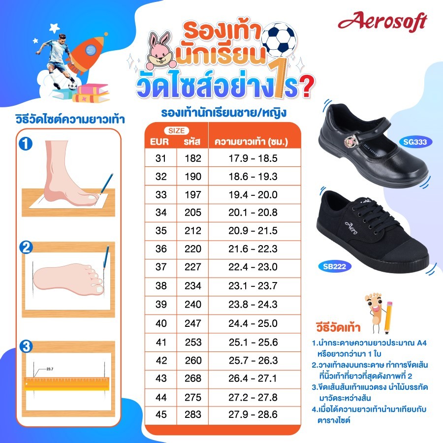 Aerosoft (แอโร่ซอฟ) รองเท้านักเรียนเพื่อสุขภาพ รุ่น Aero Kick (SB222)