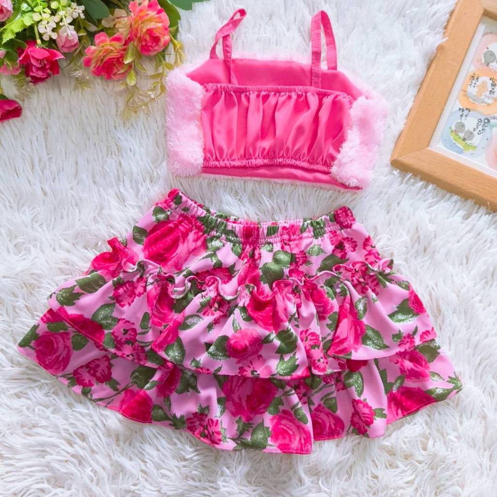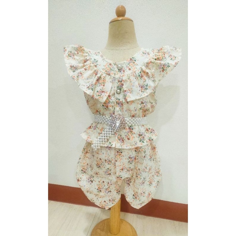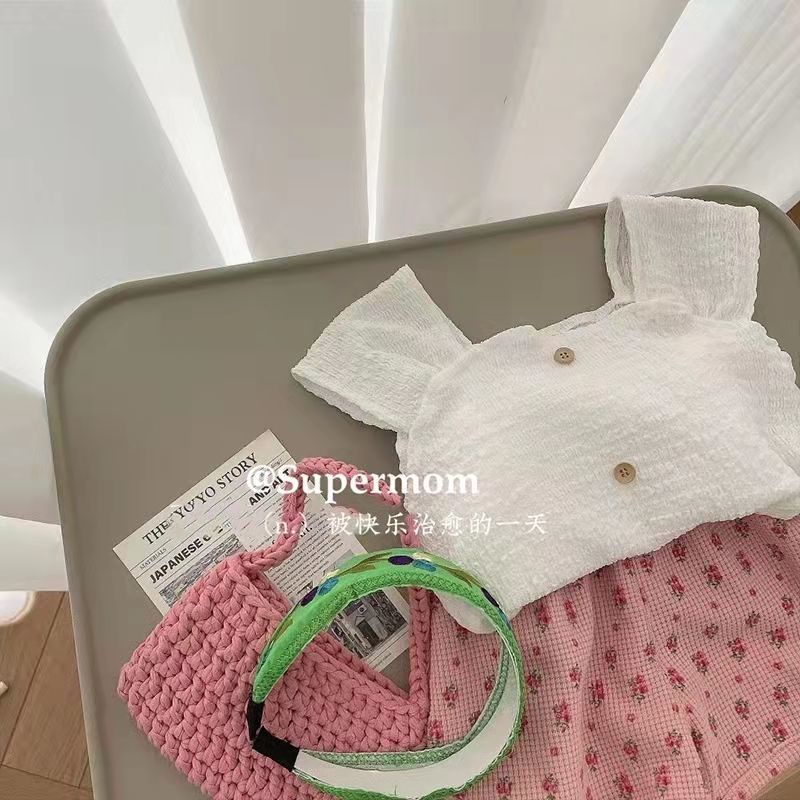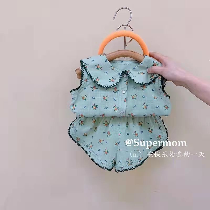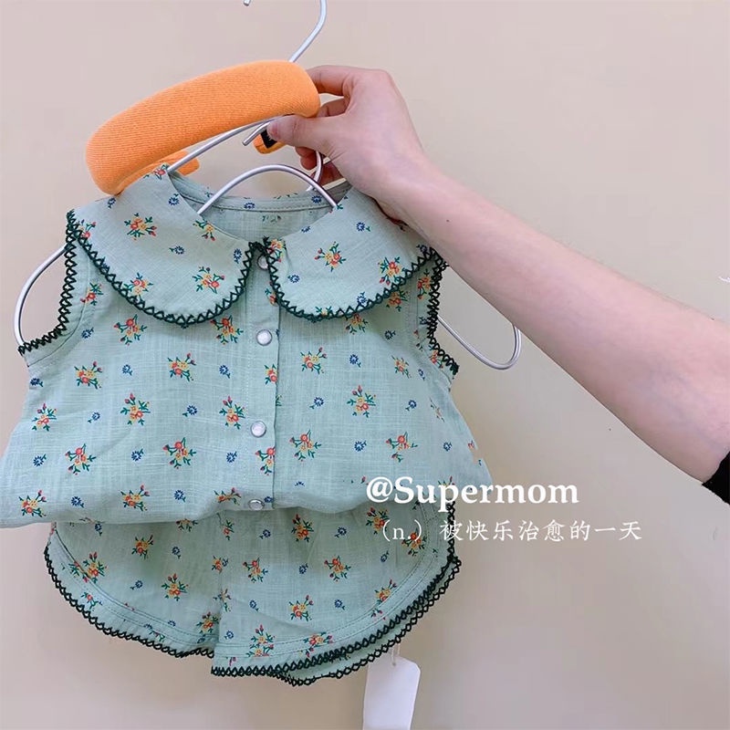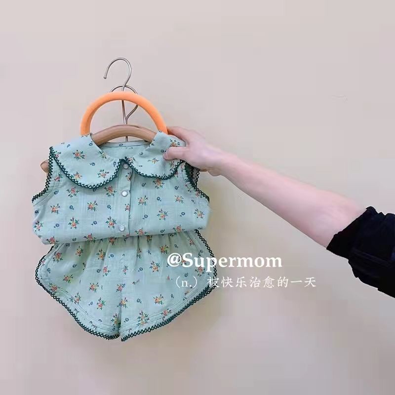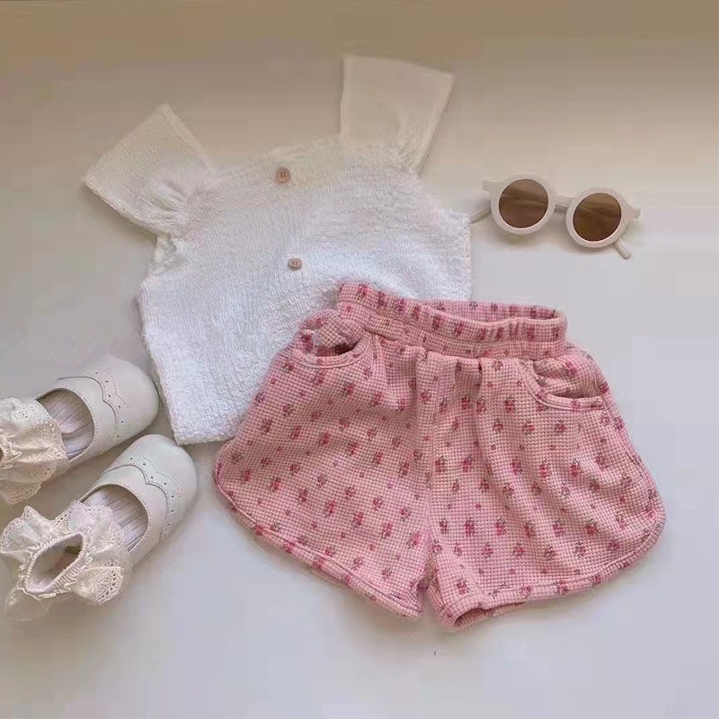 ชุดเสื้อแขนสั้น กางเกงขาสั้น ลายดอกไม้ สองชิ้น แฟชั่นฤดูร้อน สไตล์เกาหลี ตะวันตก สําหรับเด็กผู้หญิง