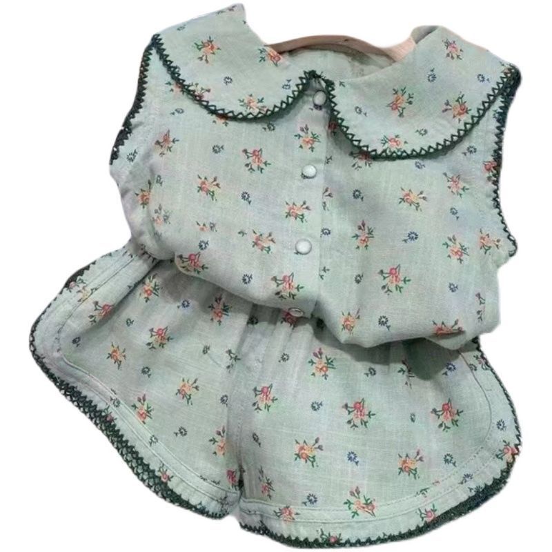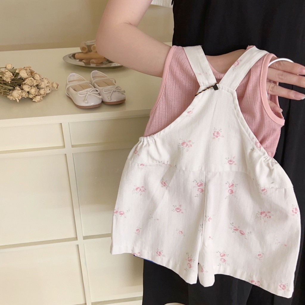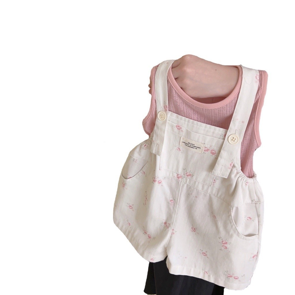 ชุดเอี๊ยมกางเกงขาสั้น ทรงหลวม ลายดอกไม้ สไตล์เกาหลี แฟชั่นฤดูร้อน สําหรับเด็กผู้หญิง สองชิ้น