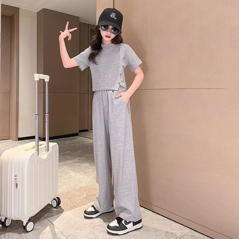 ชุดเสื้อแขนสั้น และกางเกงขากว้าง ป้องกันยุง แฟชั่นฤดูร้อน สไตล์เกาหลี สําหรับเด็กผู้หญิง