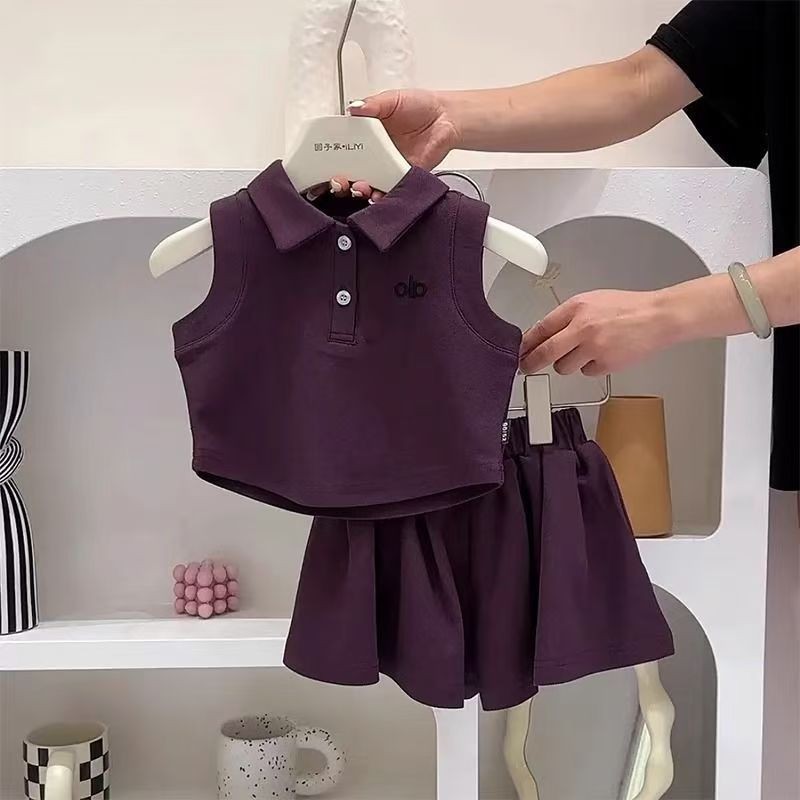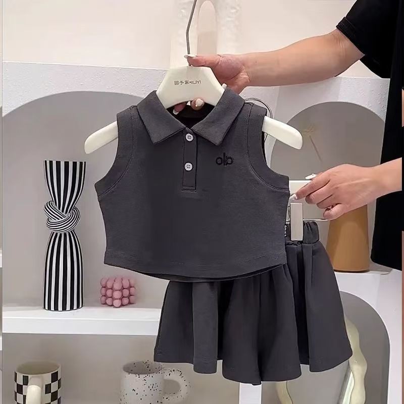 ชุดโปโลแขนกุดสำหรับเด็กผู้หญิง – เสื้อกั๊กสไตล์ฤดูร้อนใหม่พร้อมกระโปรงและกางเกง