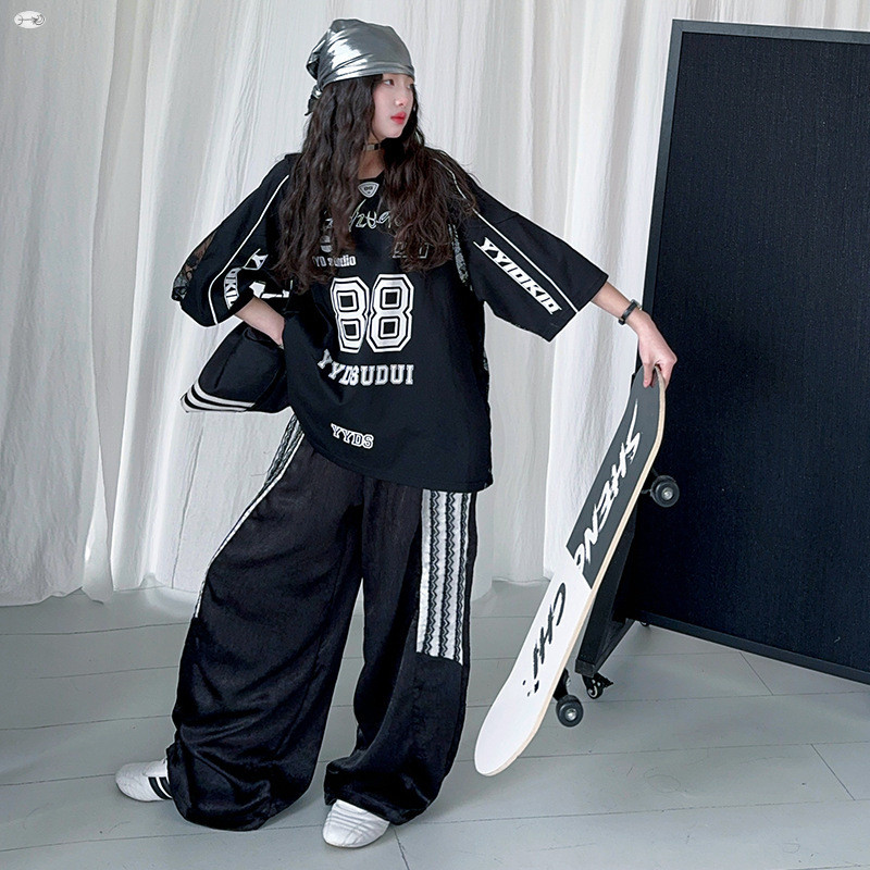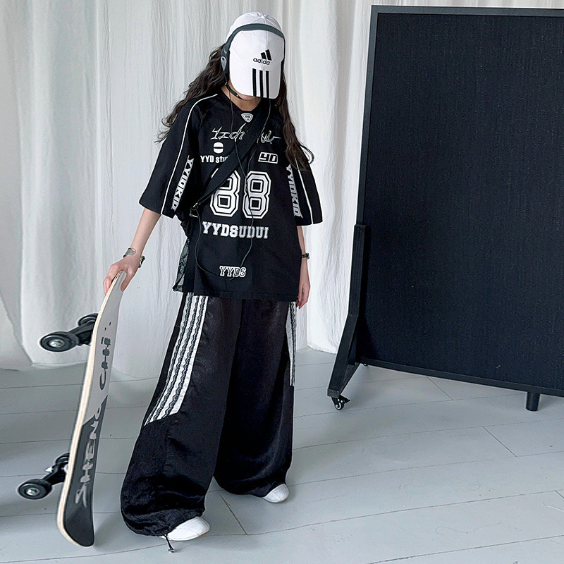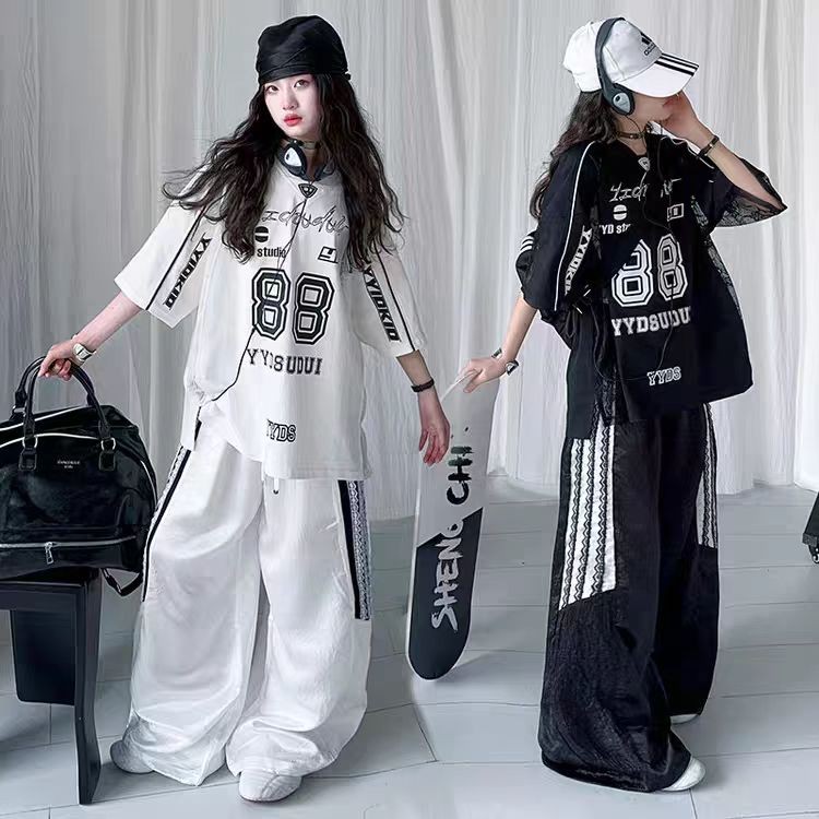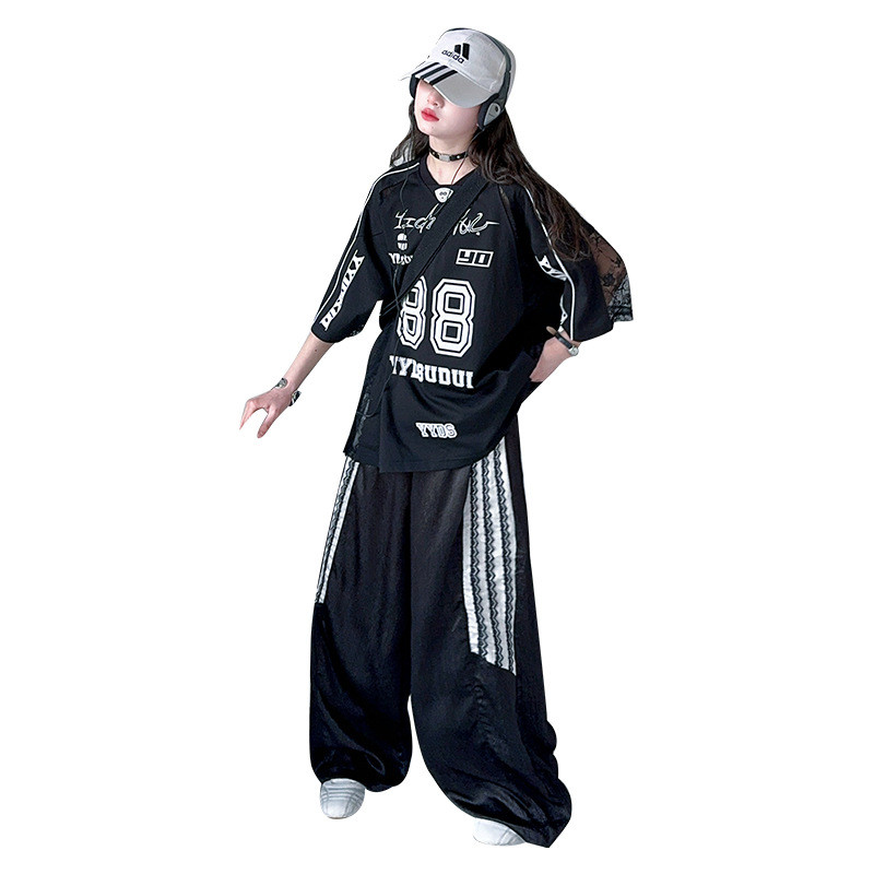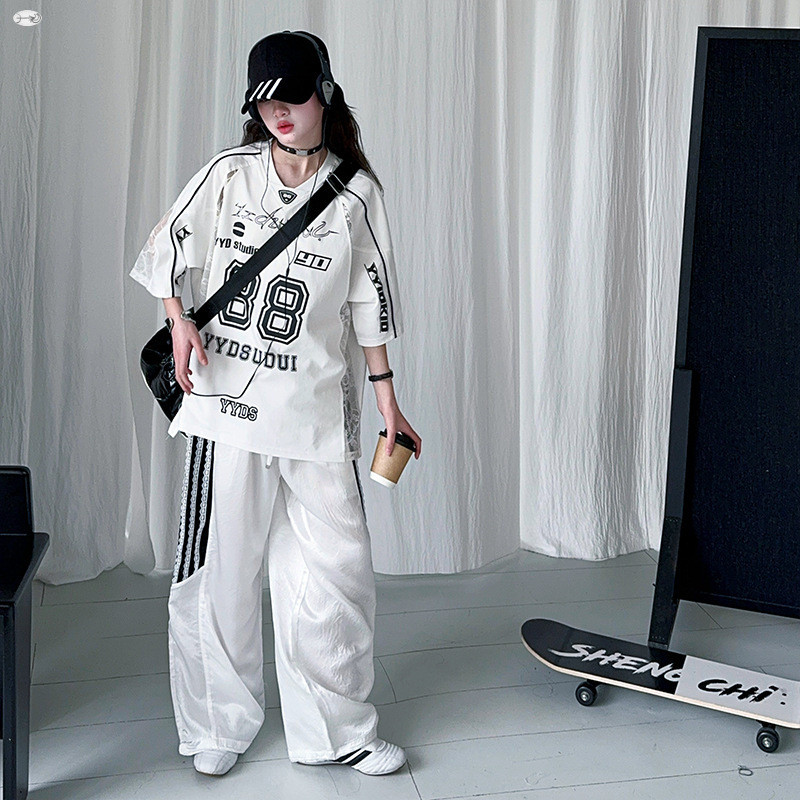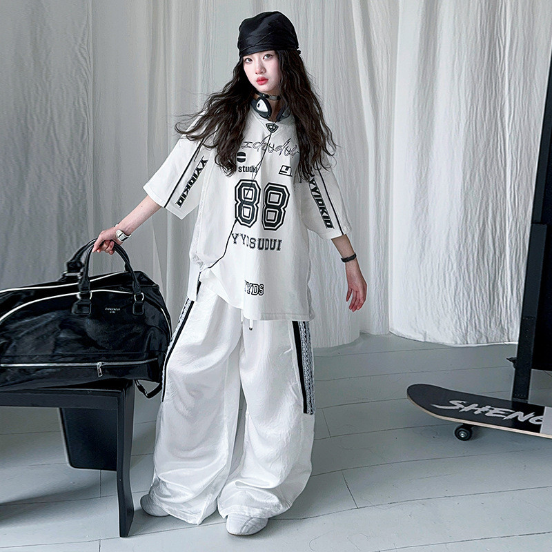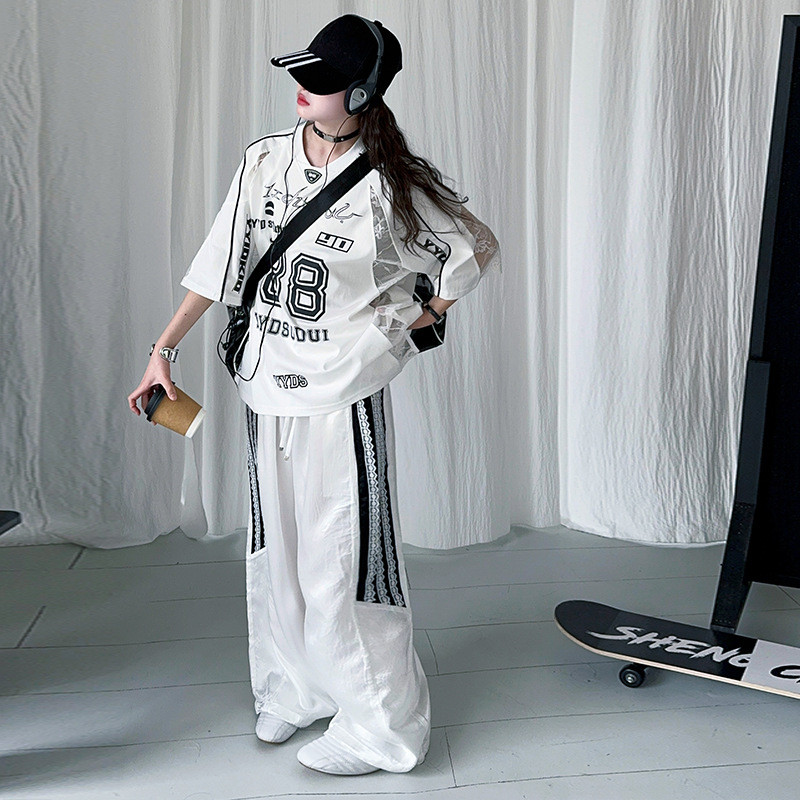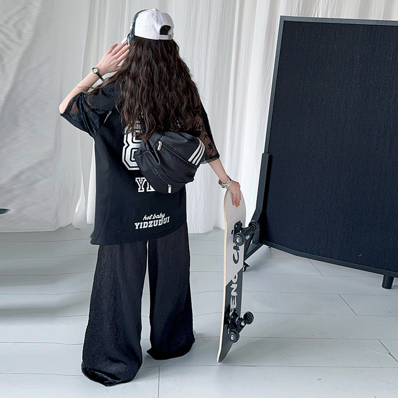 ชุดแฟชั่นเสื้อยืดตัวอักษรกางเกงขากว้างลายลูกไม้ สำหรับเด็กหญิง 5-13 ปี
