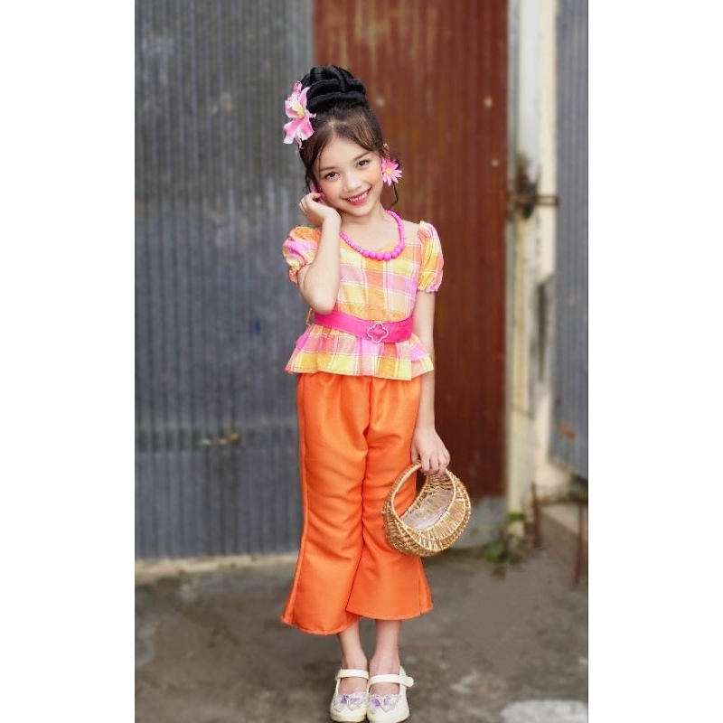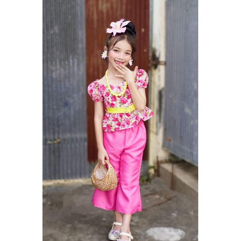 ชุดไทยเด็ก กัลยาณี ผ้าไหมสีสันสดใสสวยใส่ได้ทุกเทศกาล✨(ไม่รวมเครื่องประดับ)