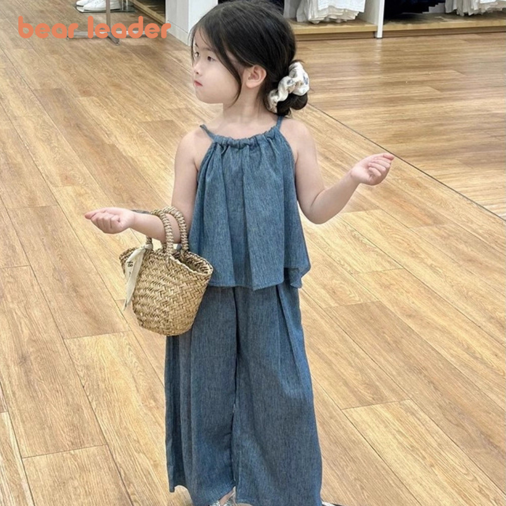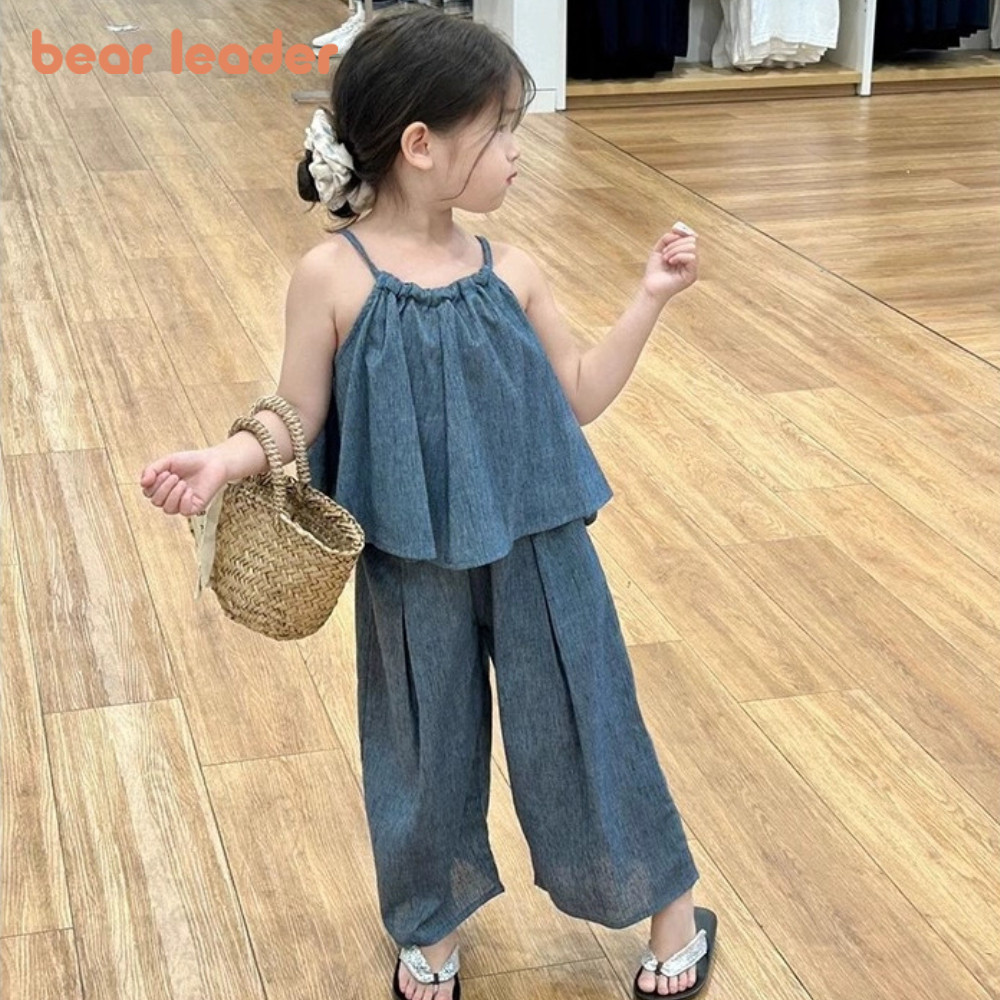 หมีผู้นําฤดูร้อนธรรมดา สายรัด สาวชุดเกาหลีรุ่นแขนกุดเสื้อยืดด้านบน + กางเกงชุดสองชิ้นสีทึบมุสลิม รายา เด็กแฟชั่นสวมใส่