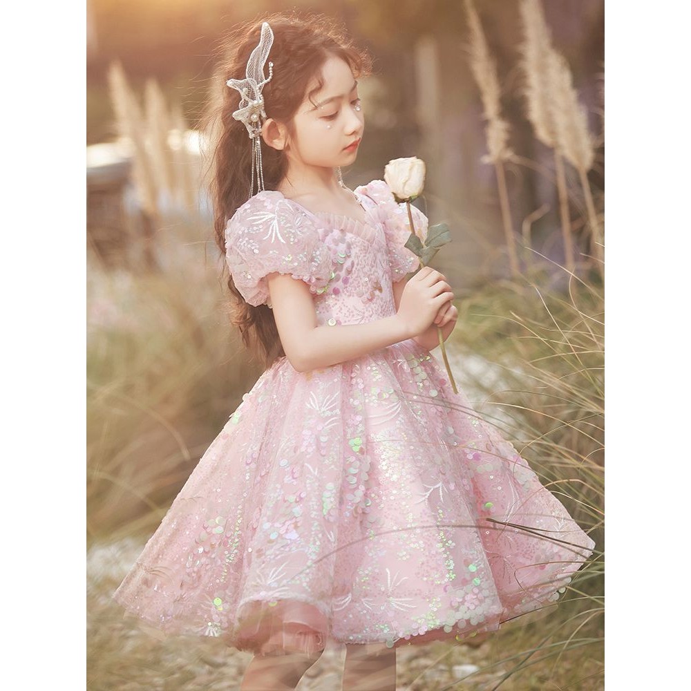 สาวแต่งตัววันเกิดชุดเจ้าหญิงเด็กแสงหรูหราระดับไฮเอนด์สีชมพูสาวน้อยโฮสต์เปียโนเครื่องแต่งกาย 10.2