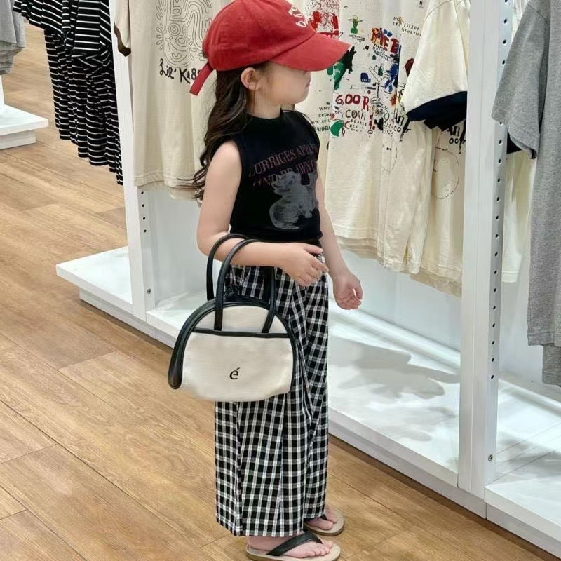 เสื้อผ้าเด็กทารกชุดสาวแมวลายเสื้อกั๊กด้านบนลายสก๊อตกางเกงขากว้าง2ชิ้นชุด2-7ปี
