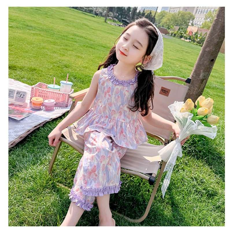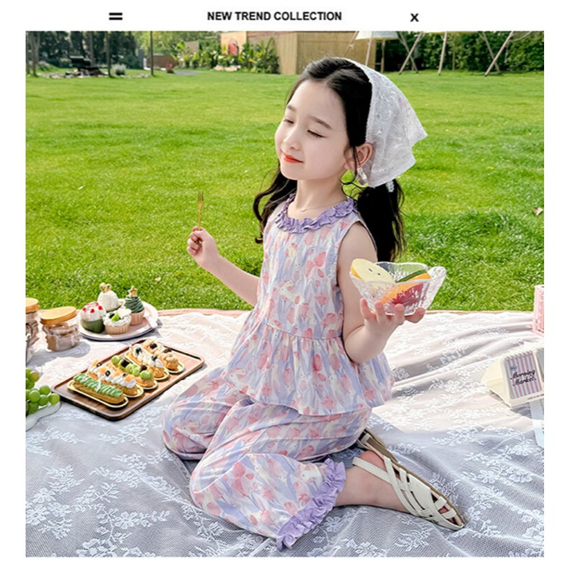 👕ชุดเด็กผู้หญิง👕ชุดเซ็ต เสื้อแขนกุด+กางเกงขายาว น่ารักๆ เนื้อผ้า นุ่มลื่น ใส่สบาย ผ้าระบายอากาศได้ดี