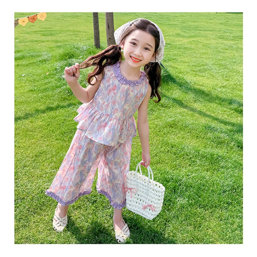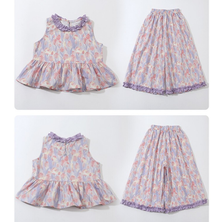 เสื้อผ้าเด็ก ชุดเซ็ตแขนกุด+กางเกงขายาวเด็กผู้หญิง แฟชั่นน่าร้อน2025 SIZE80-110 DXT252