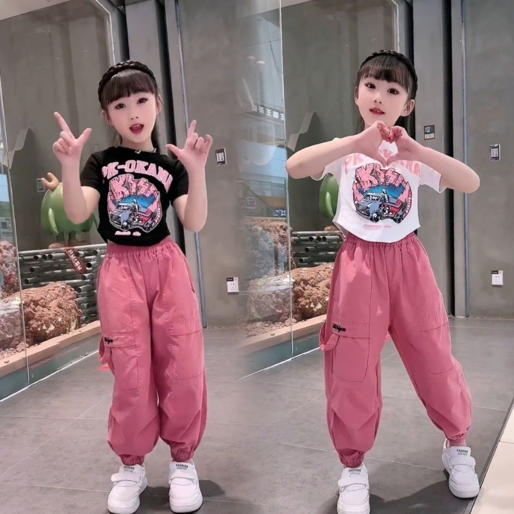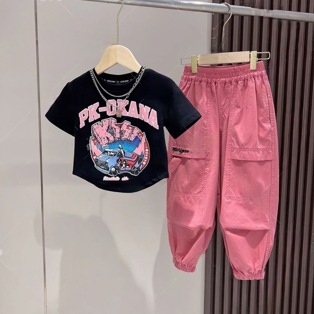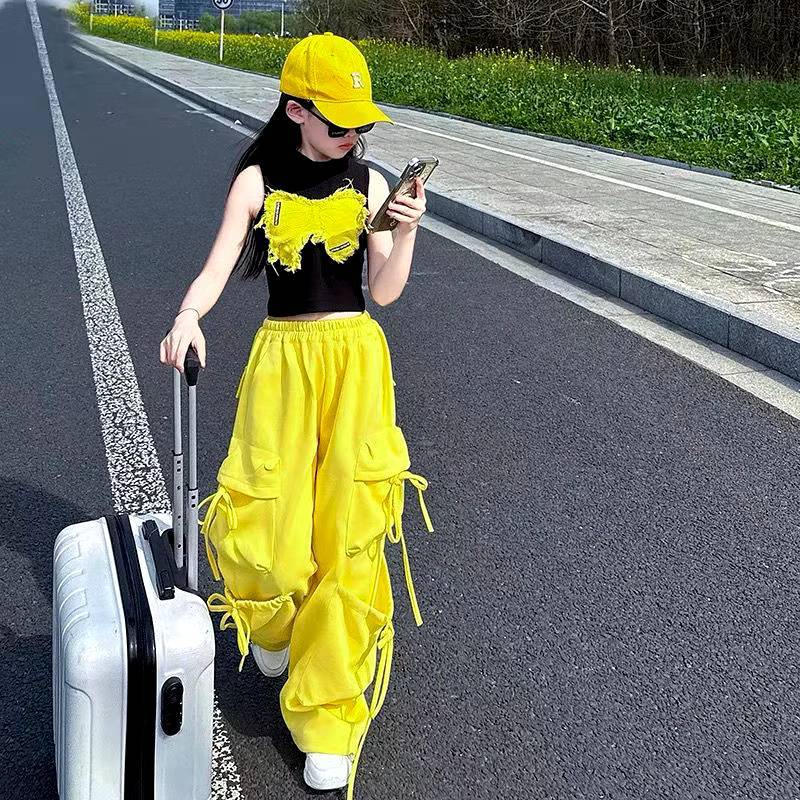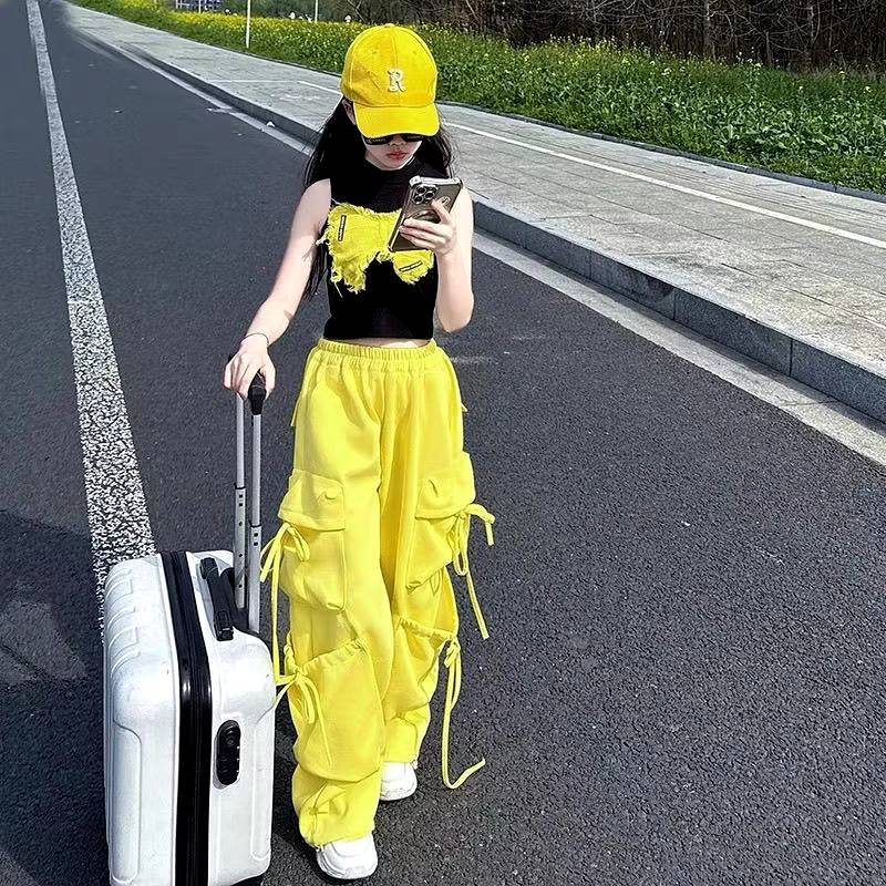 [Y D]🔥พร้อมส่ง🔥ชุดเด็กผู้หญิงน่ารัก ชุดเซ็ต 2ชิ้น เสื้อลายผีเสื้อ+กางเกงคาร์โก้สีเหลือง สไตล์แฟชั่นฤดูร้อน #421