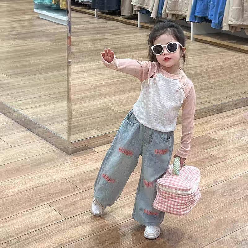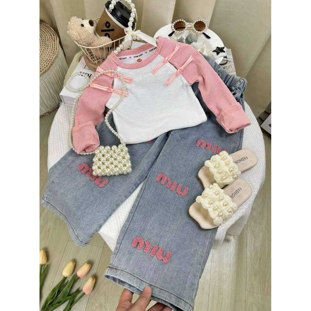 [Y D]🔥พร้อมส่ง🔥ชุดเซ็ต 2 ชิ้น เสื้อแขนยาว สไตล์จีนใหม่ +กางเกงยีนส์ขายาวอินเทรนด์ สำหรับเด็กผู้หญิง#362