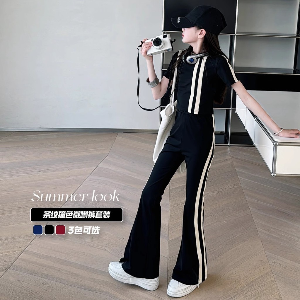 【สปอต】 3-14 ปี ชุดเด็กหญิง,ชุดกีฬาสำหรับเด็ก,ชุดเด็กฤดูร้อนตะวันตกแบบสบาย ๆ,ชุดสูทแขนสั้นสำหรับเด็กขนาดกลางและขนาดใหญ่,,