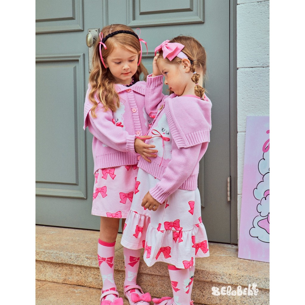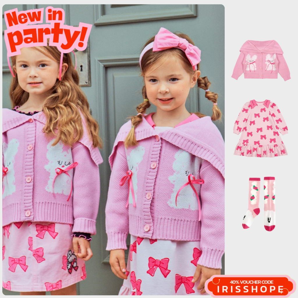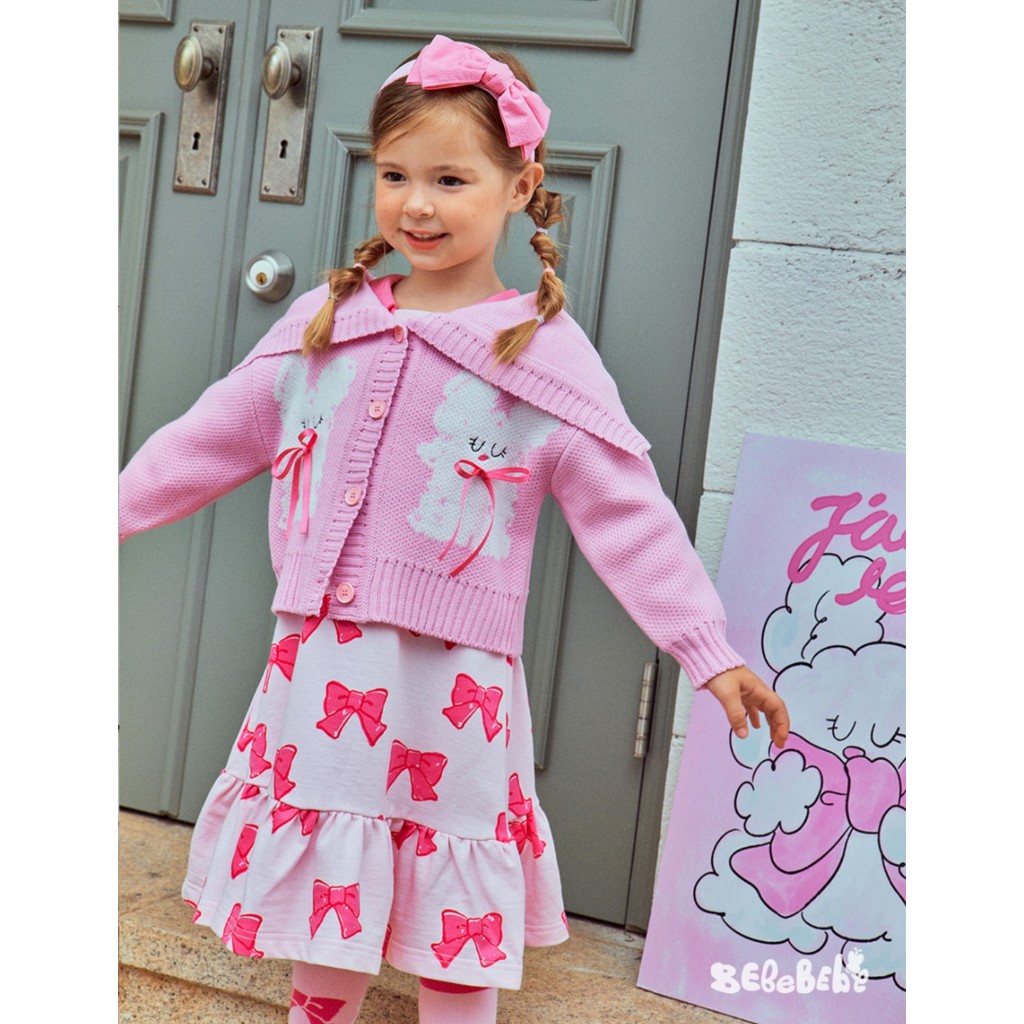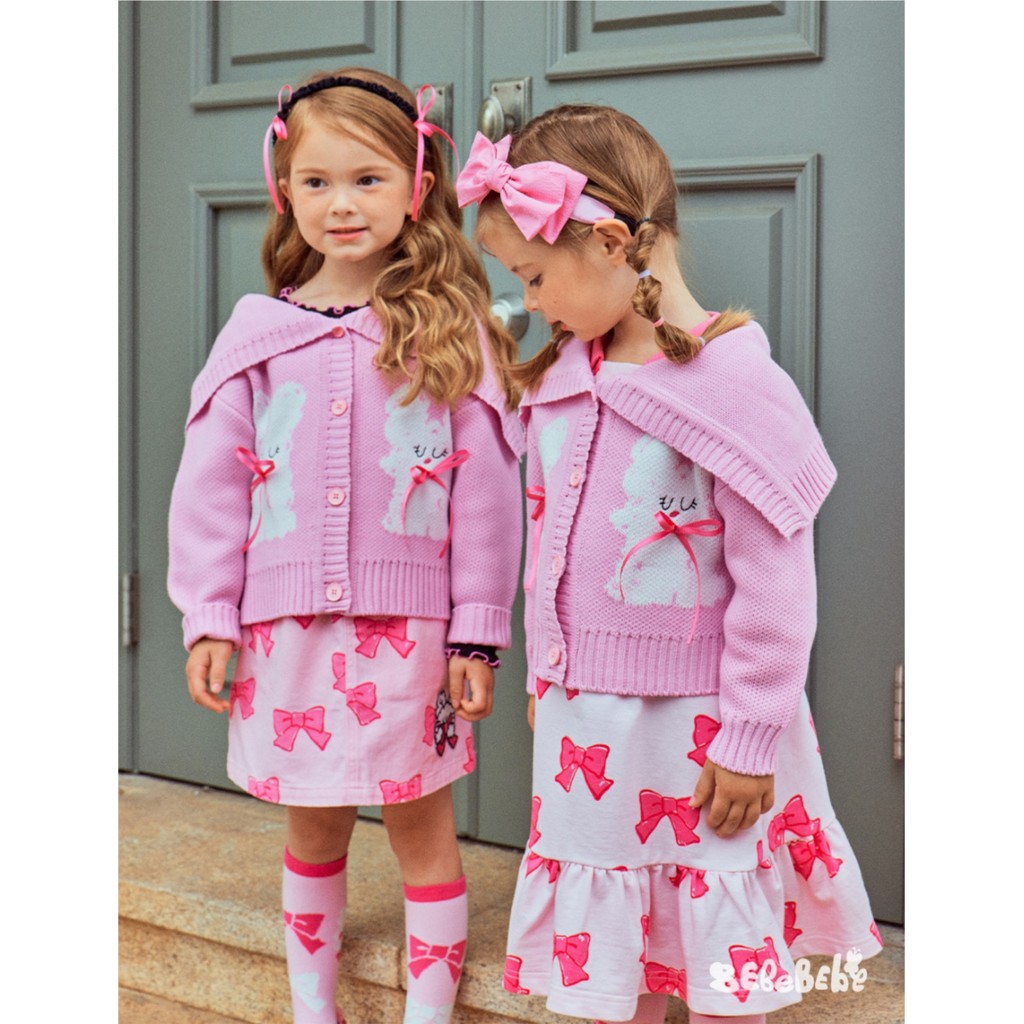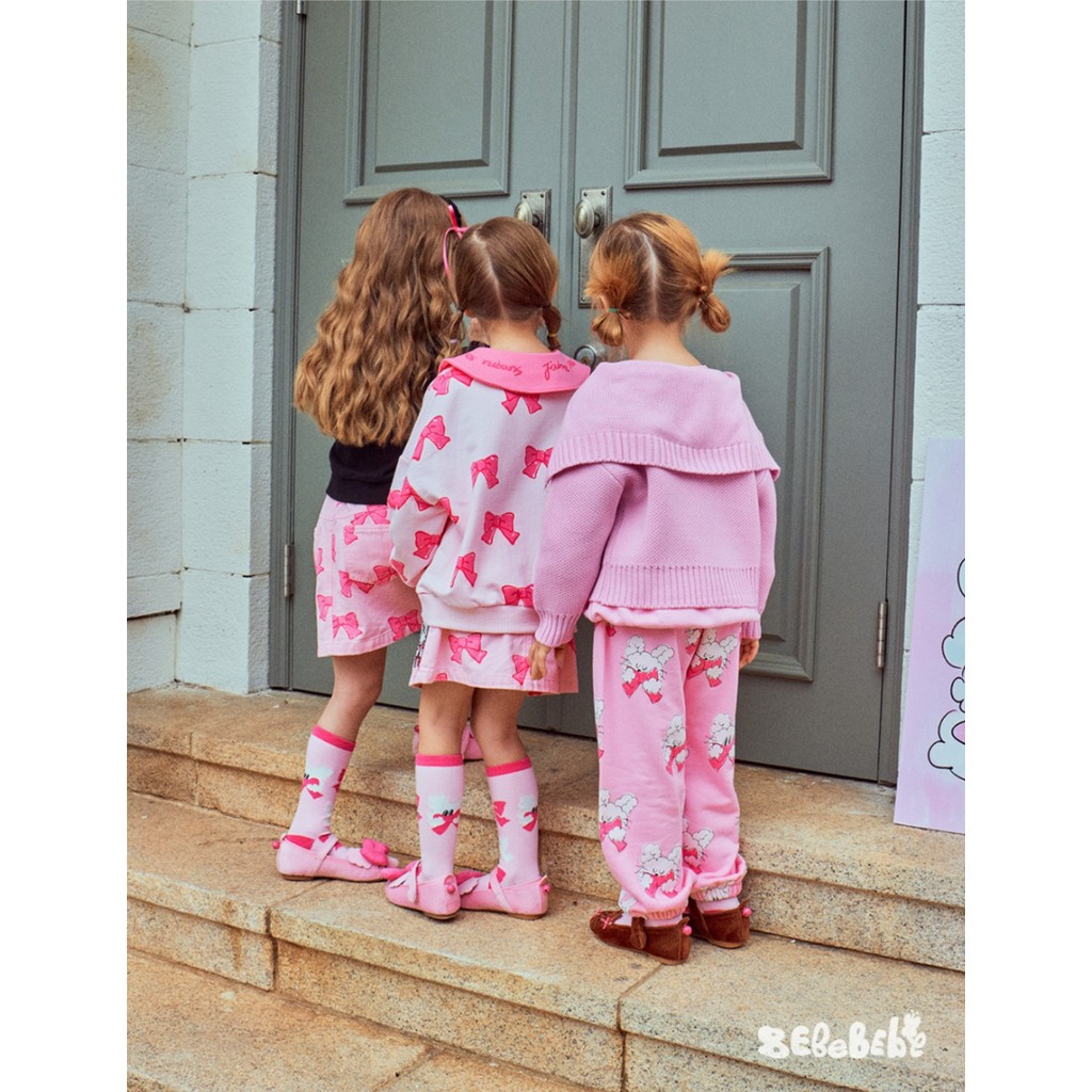「สินค้าลิขสิทธิ์แท้」IRIS KIDS 25 autumn Bebe series IKD33032 Bow pink เสื้อผ้าสไตส์เกาหลี ผ้านุ่ม