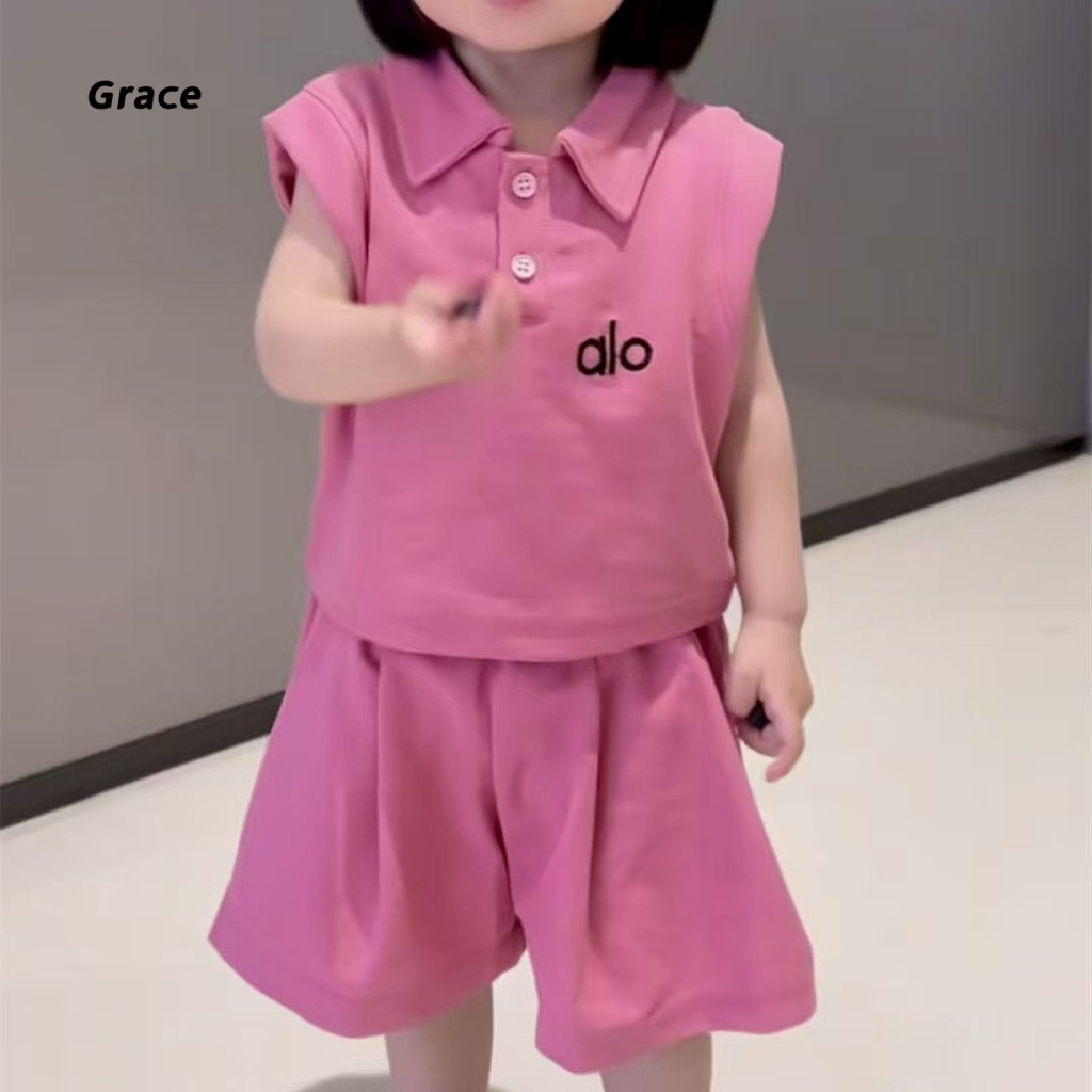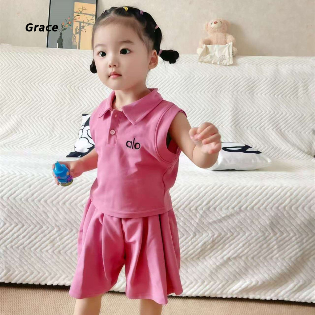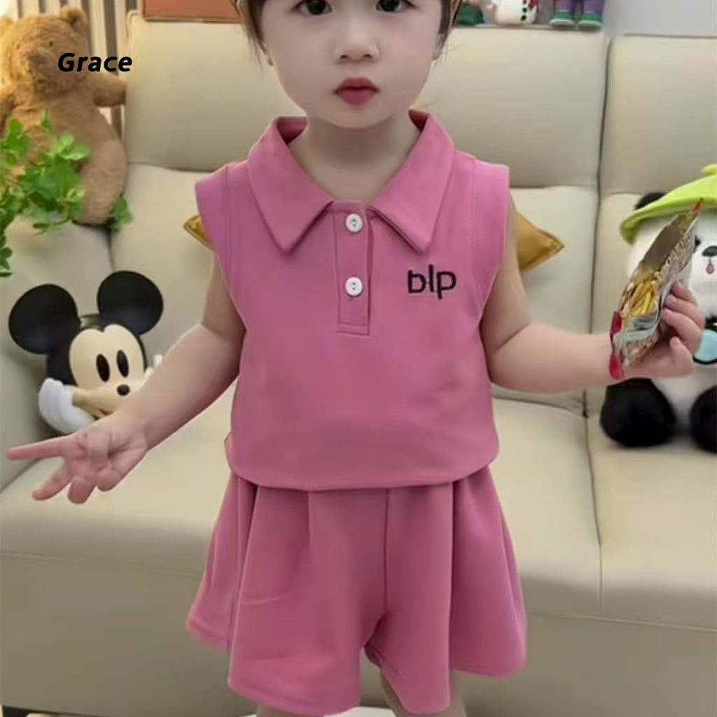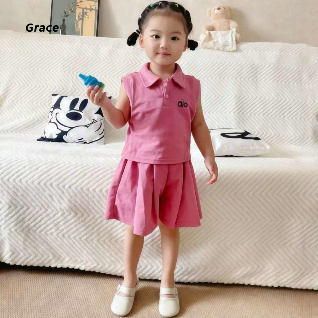 【Grace】ชุดเด็กผู้หญิง ชุดเดรส 2 ชิ้น 2025 ชุดแฟชั่นเด็กผู้หญิงแขนสั้นโปโล + กางเกงกระโปรงน่ารัก..GR3298#