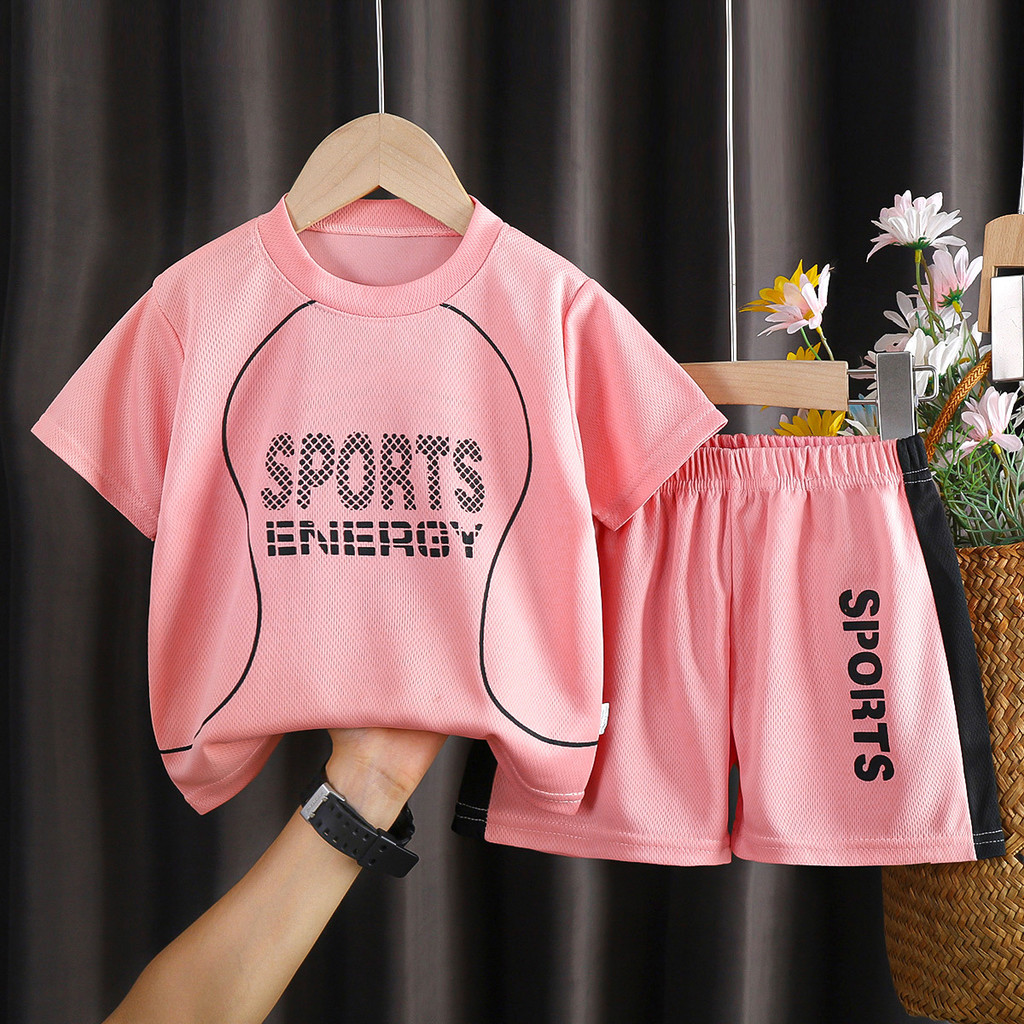 [RJ] ชุดสูทแขนสั้นสําหรับเด็ก 90-160 ซม. ชุดกีฬาวิ่ง Quick-Drying ชายหญิงฤดูร้อนบางชุดสองชิ้น