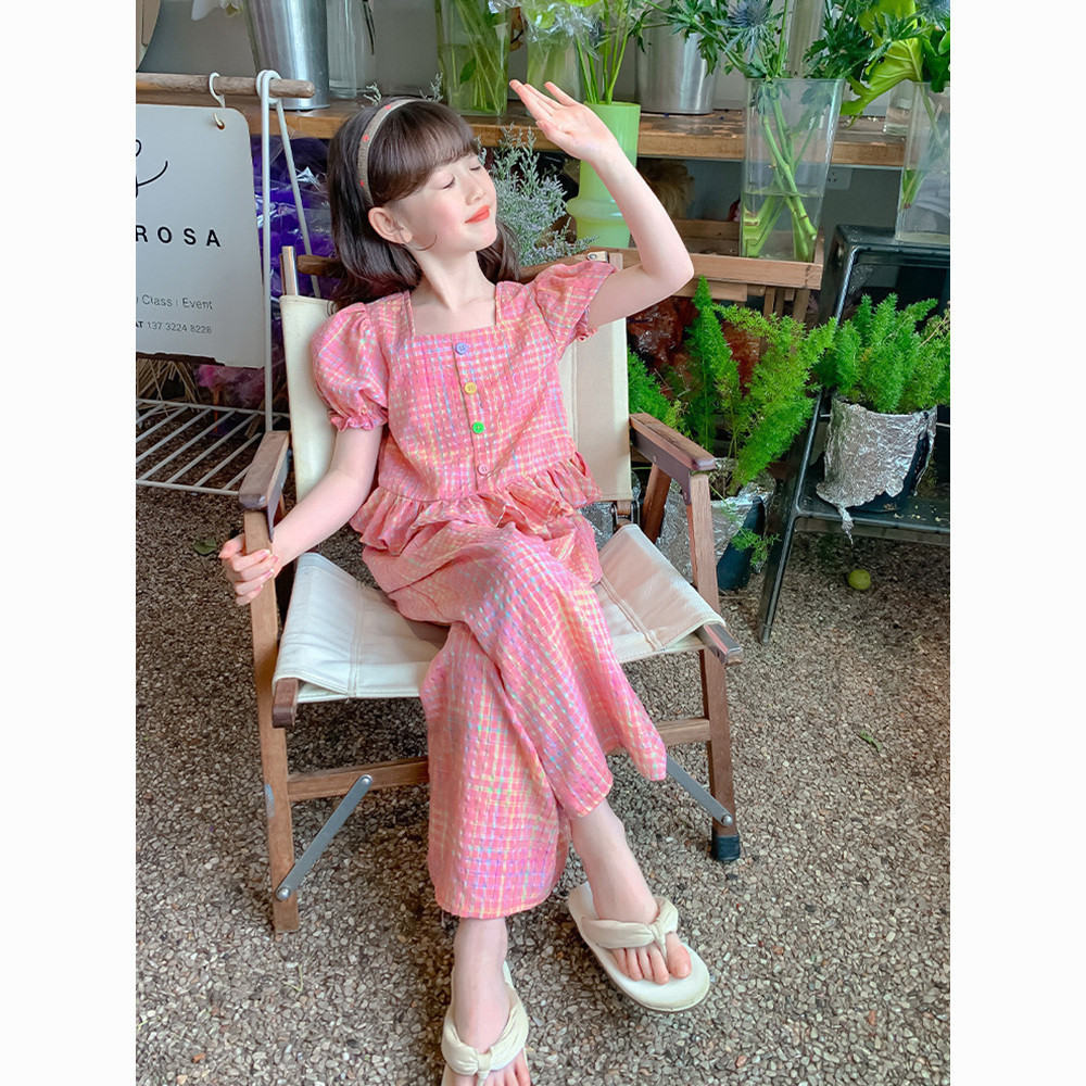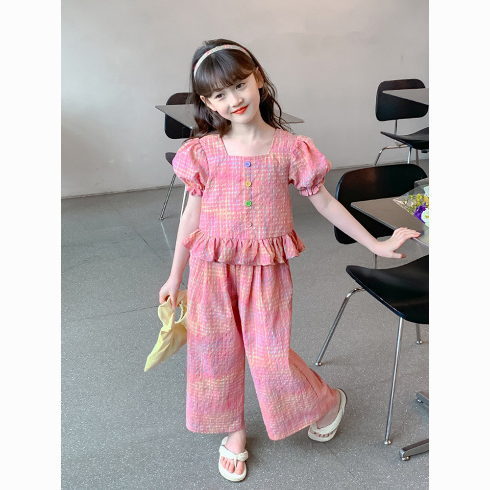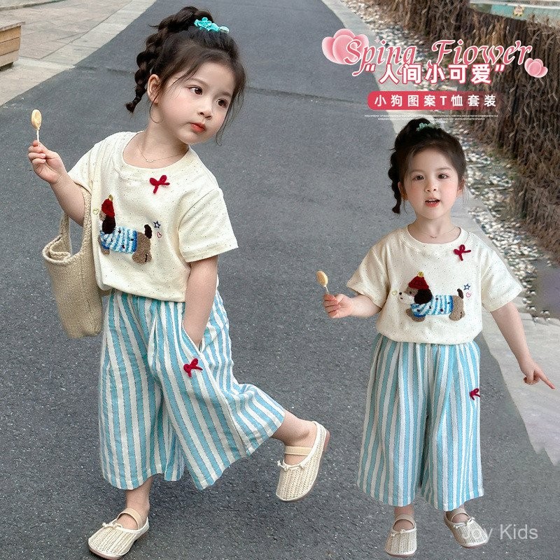 honeywears⚡️พร้อมส่ง⚡️ชุดเด็กผู้หญิงแฟชั่น เสื้อยืดแขนสั้นน่ารัก+กางเกงคาร์โก้เด็ก ชุดฤดูร้อนลำลองสองชิ้น สไตล์เกาหลี ไซส์ 100-160