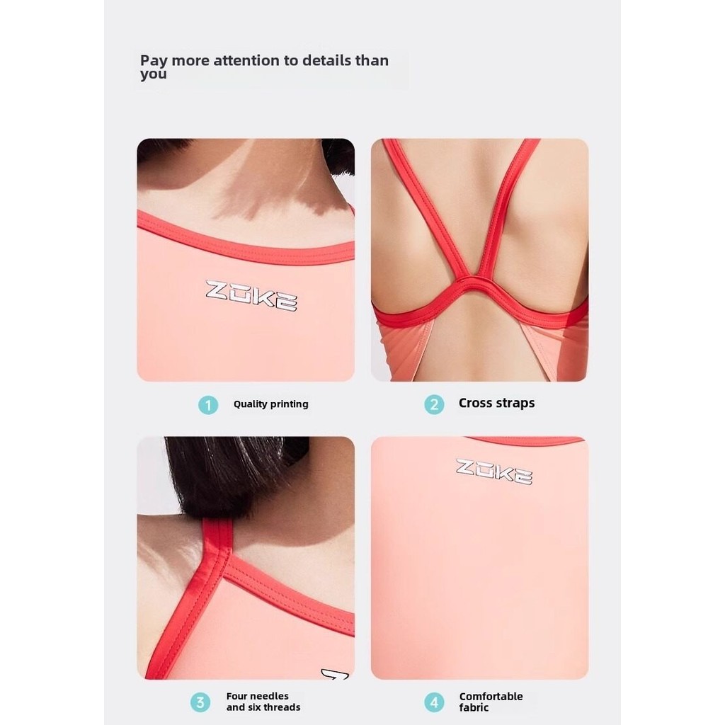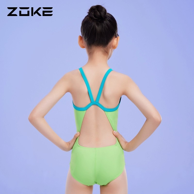 Zoke สาวการแข่งขันชุดว่ายน้ํา Professional สามเหลี่ยมการพิมพ์ดิจิตอลการฝึกอบรมชุดว่ายน้ํา One Piece ชุดว่ายน้ําสําหรับวัยรุ่นหญิง