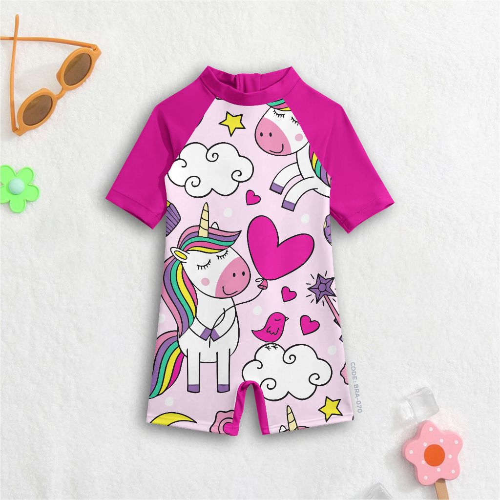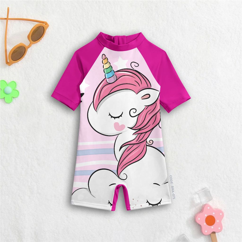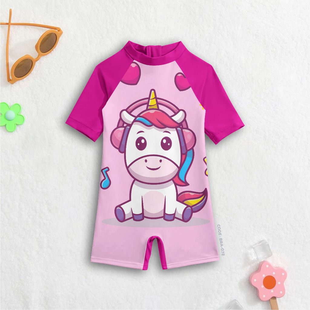ชุดว่ายน้ําเด็กผู้หญิง Helokity and Unicorn motif น่ารักล่าสุด Stitchingbandung