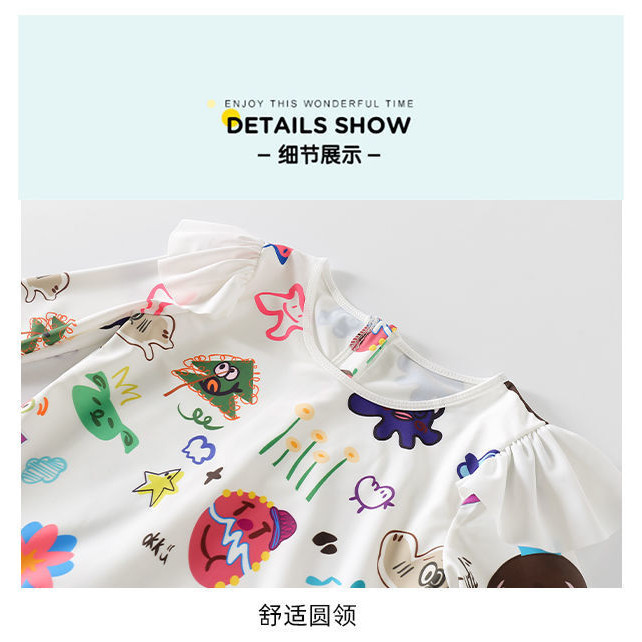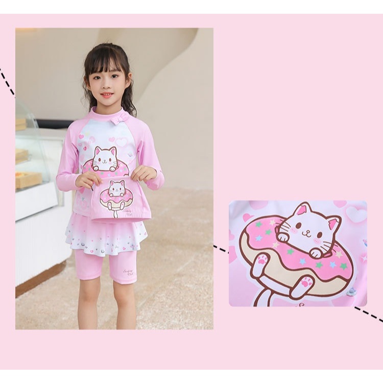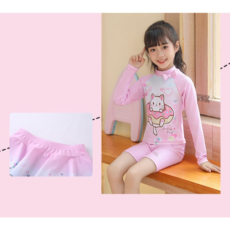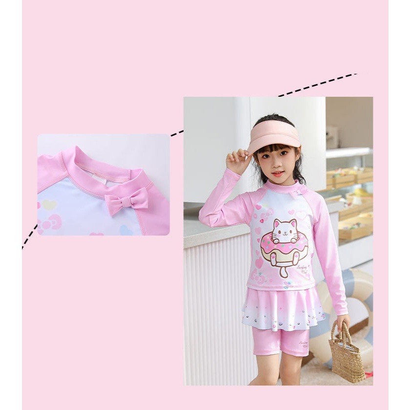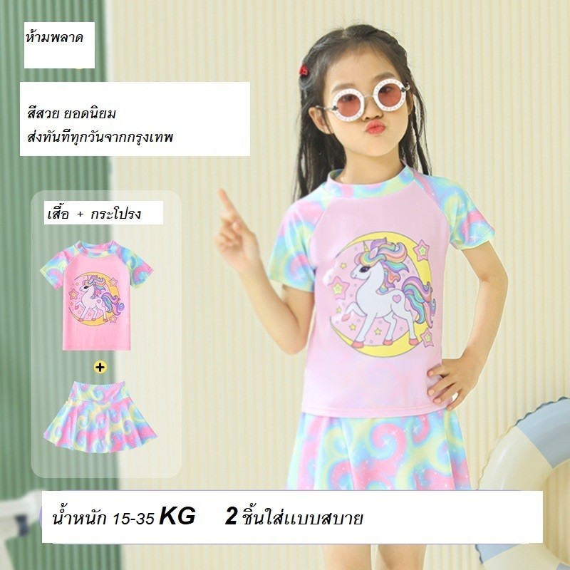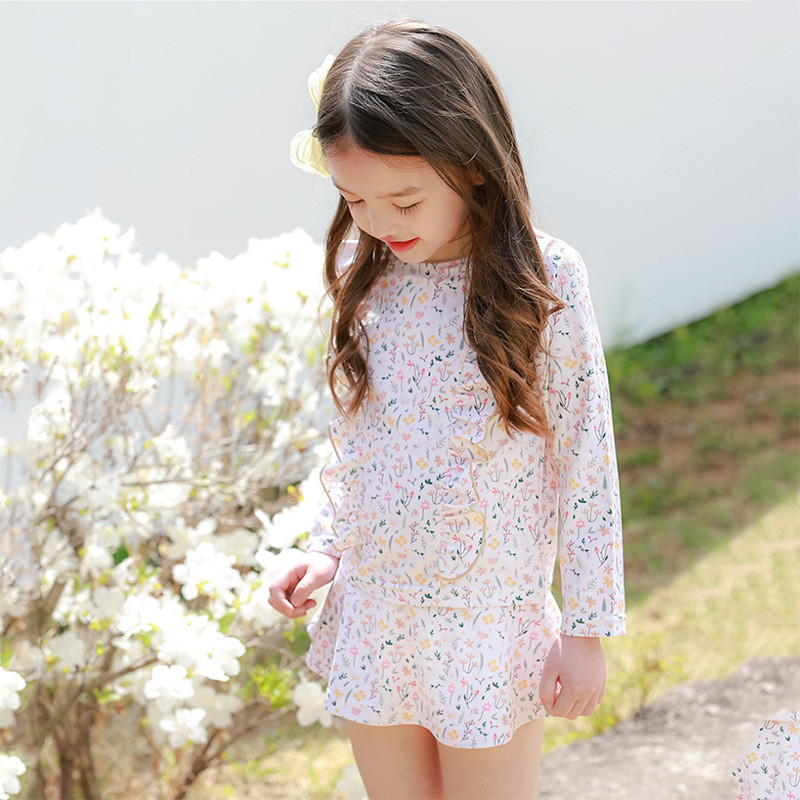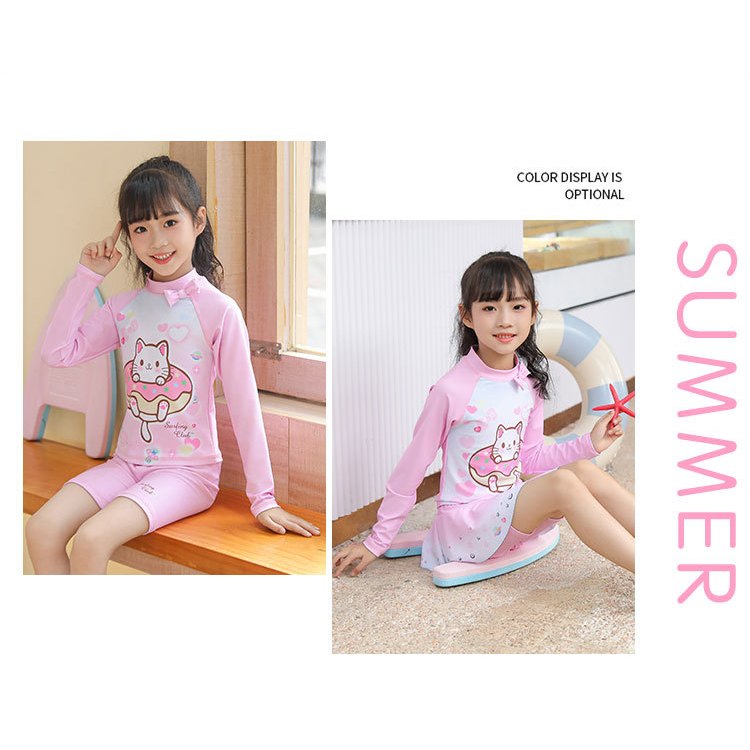 ชุดว่ายน้ําเด็กผู้หญิงแยกชุดว่ายน้ําแขนยาวทารก 2-9 ปีชายหาดชุดว่ายน้ําน้ําพุร้อน ดวงอาทิตย์