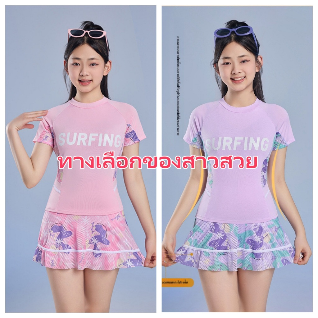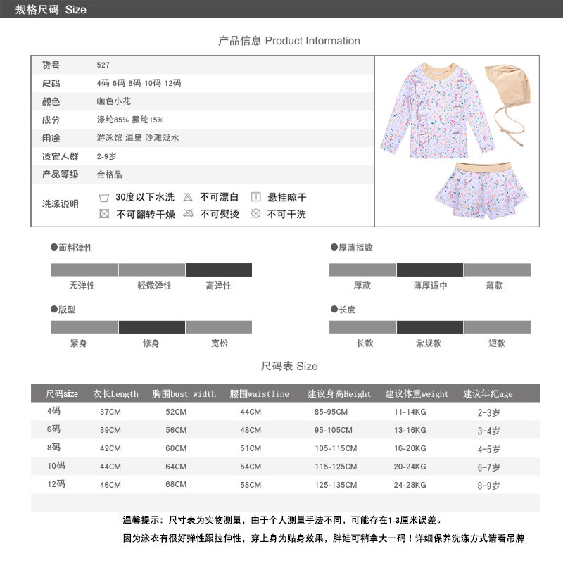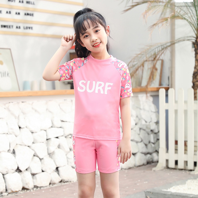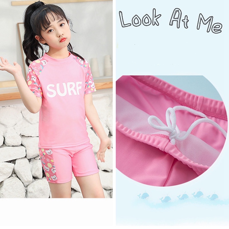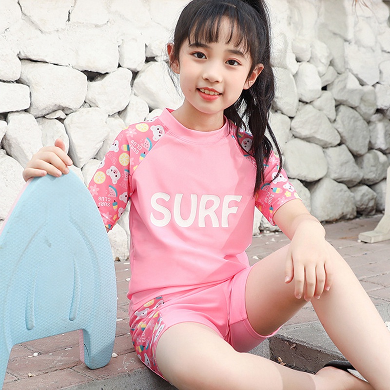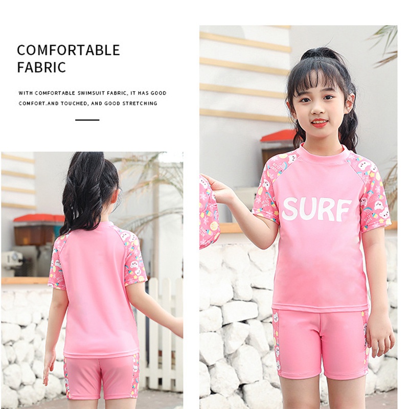ชุดว่ายน้ําเด็กผู้หญิงแยกชุดว่ายน้ําแขนยาวทารก 2-9 ปีชายหาดชุดว่ายน้ําน้ําพุร้อน ดวงอาทิตย์