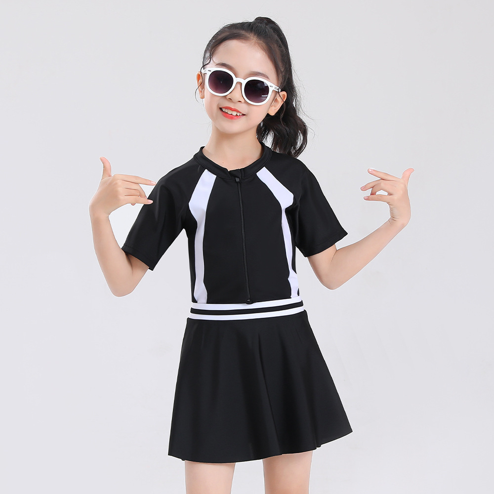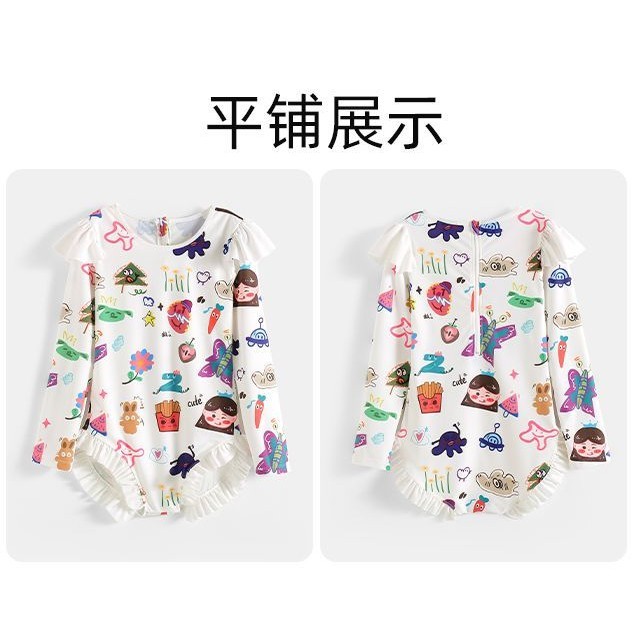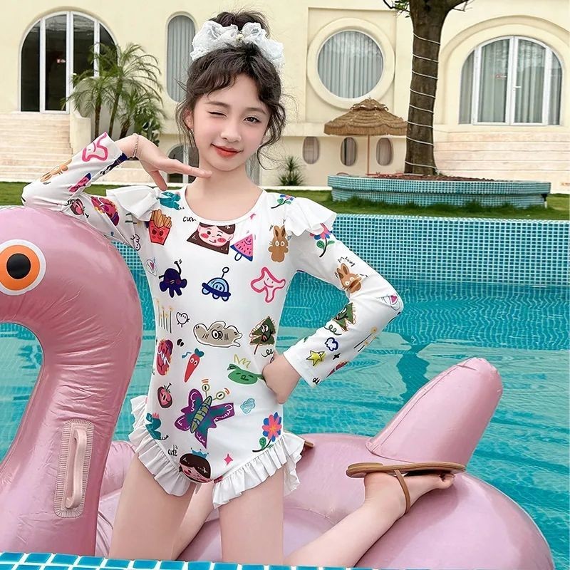 ชุดว่ายน้ําวันพีซเด็กผู้หญิงสําหรับเด็ก 2024 ดวงอาทิตย์-การพิสูจน์ ชุดว่ายน้ําสไตล์ตะวันตกขนาดกลางและใหญ่เด็กสาวชุดว่ายน้ําแขนยาวน่า