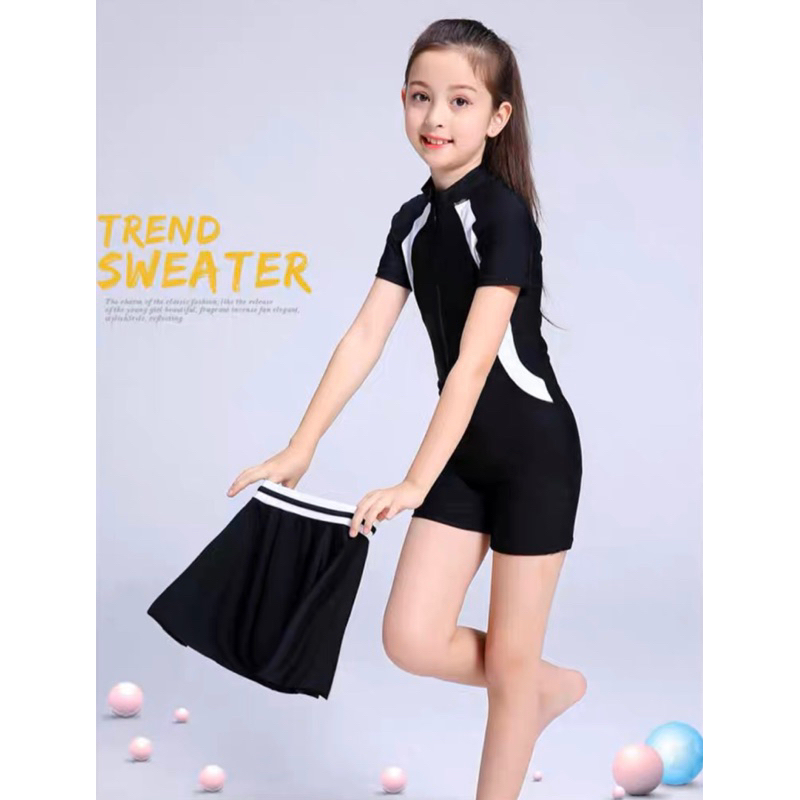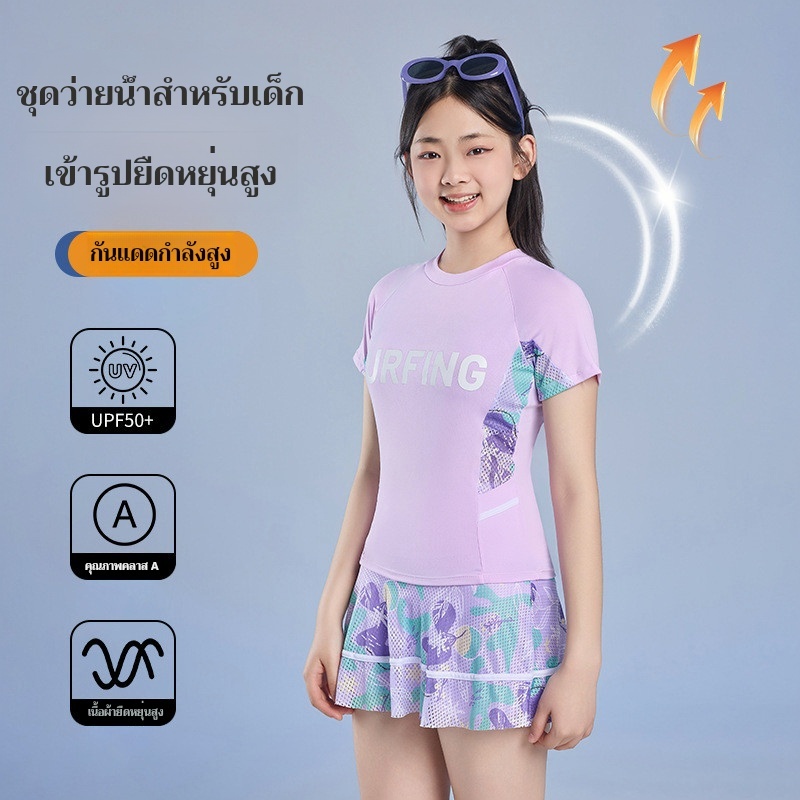 ชุดว่ายน้ำ YUKE ชุดว่ายน้ำวันพีชป้องกันแสงแดดสำหรับเด็กผู้หญิง