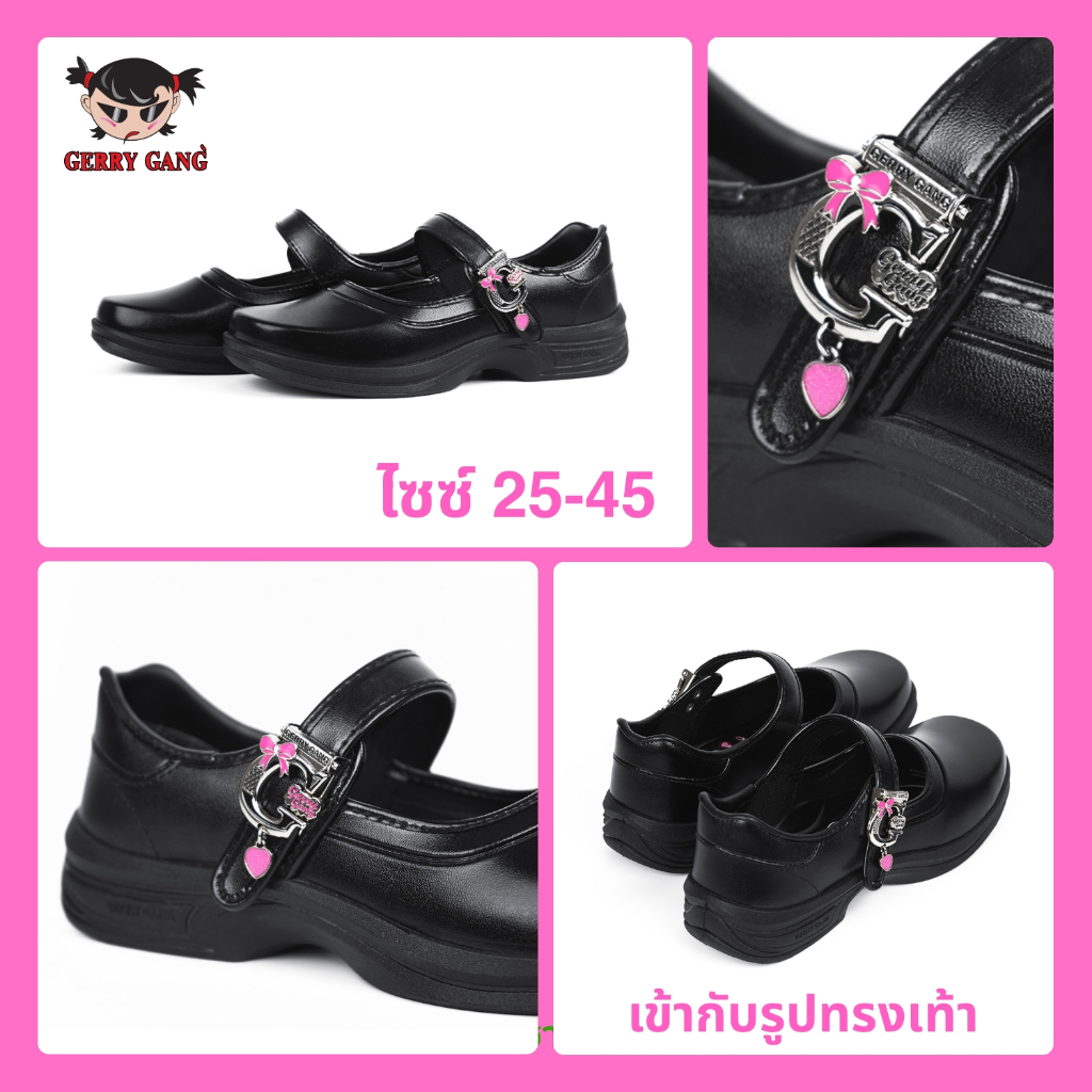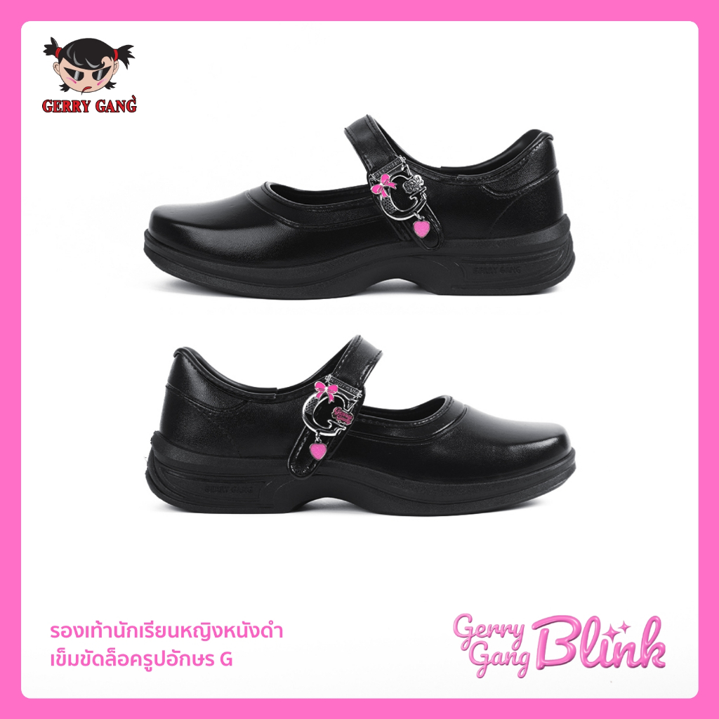 Gerry Gang Blink! รองเท้านักเรียนหญิงหนังดำ รุ่น G6804-07 ไซซ์ 25-45