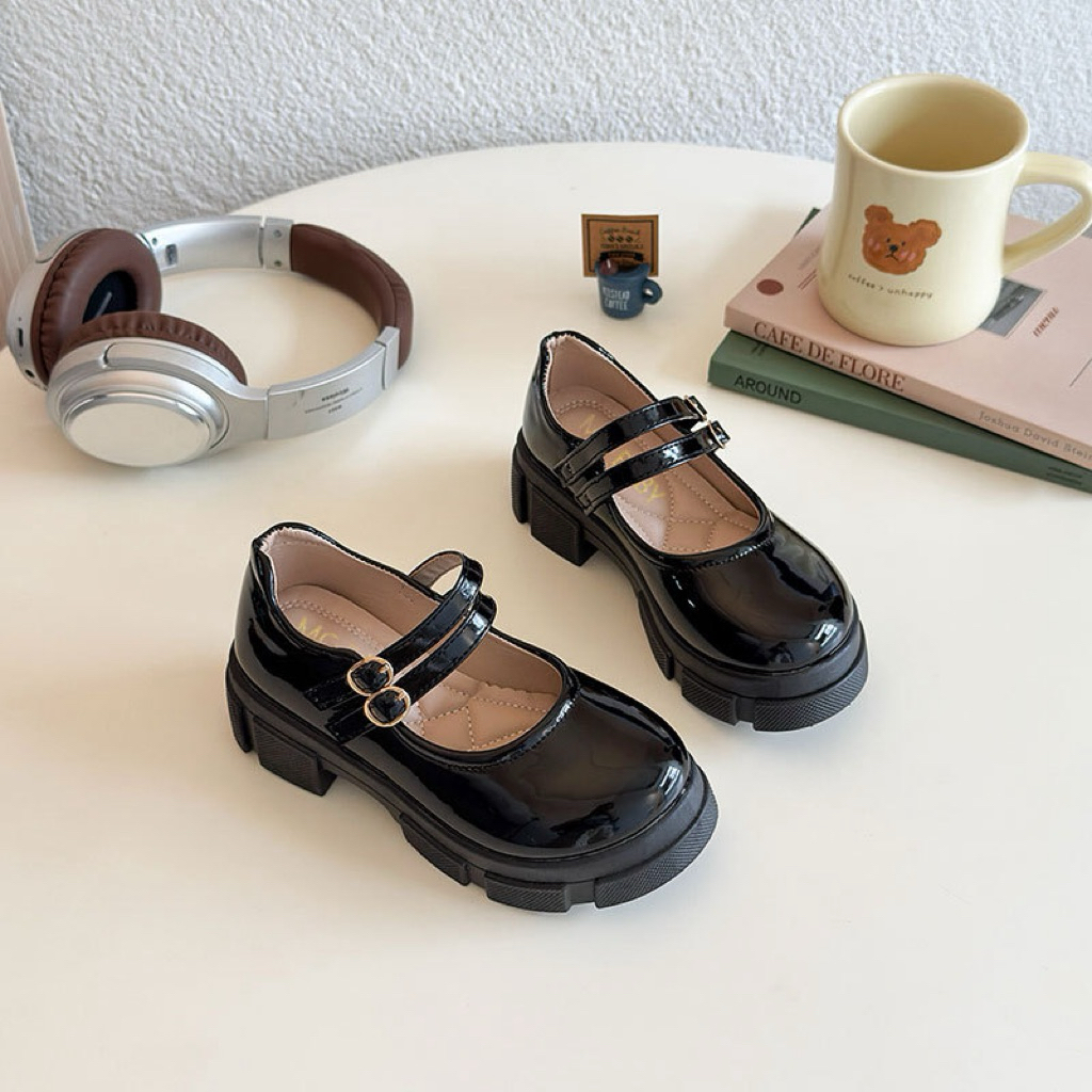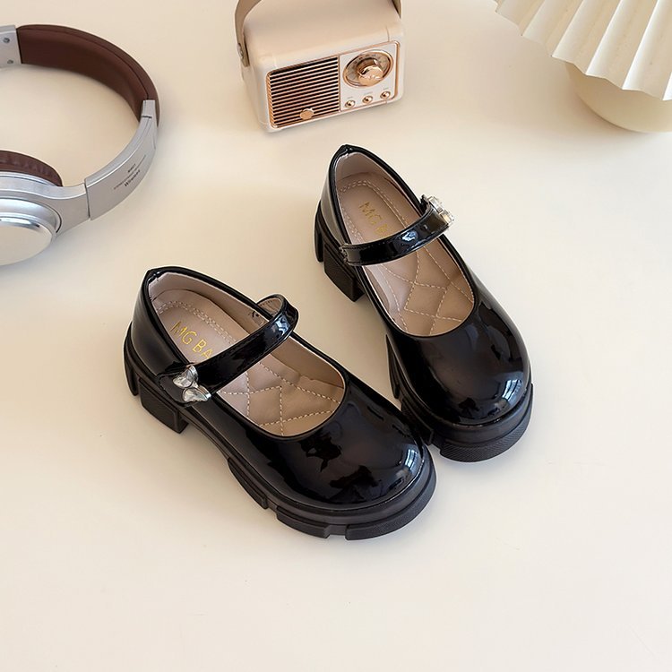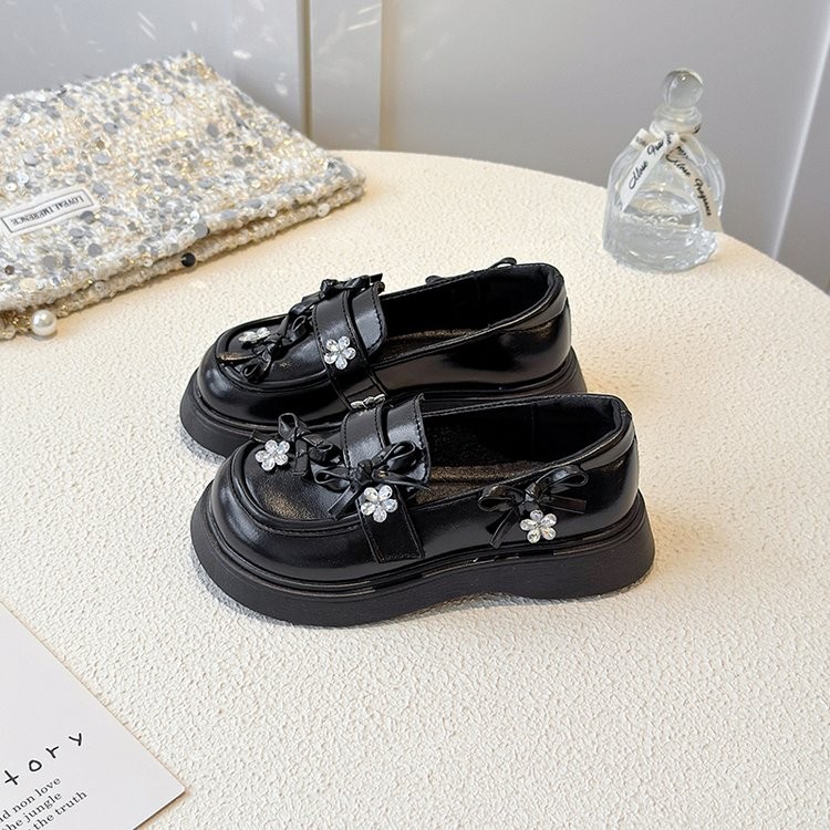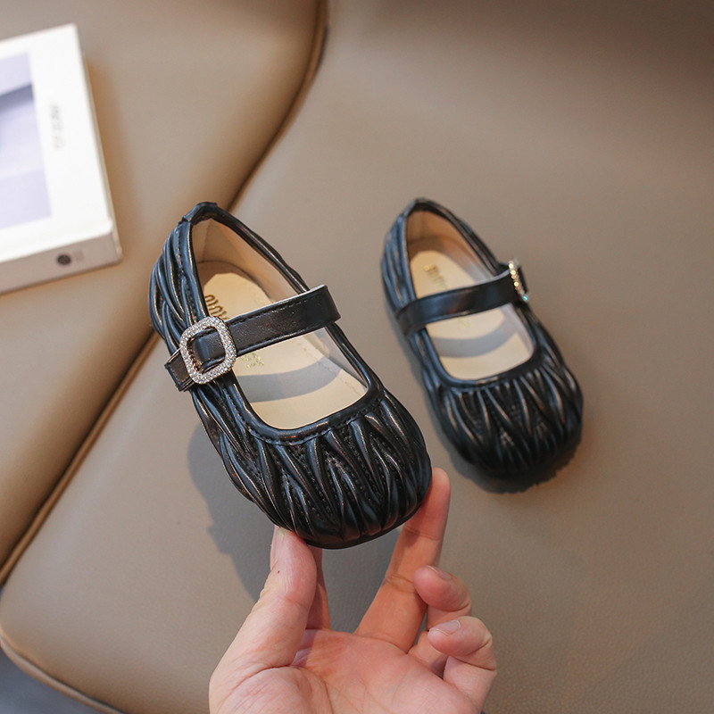 รองเท้าหนังเด็กผู้หญิงสีดํา นิ่ม พื้นรองเท้า รองเท้าเจ้าหญิงสําหรับเด็กนักเรียน