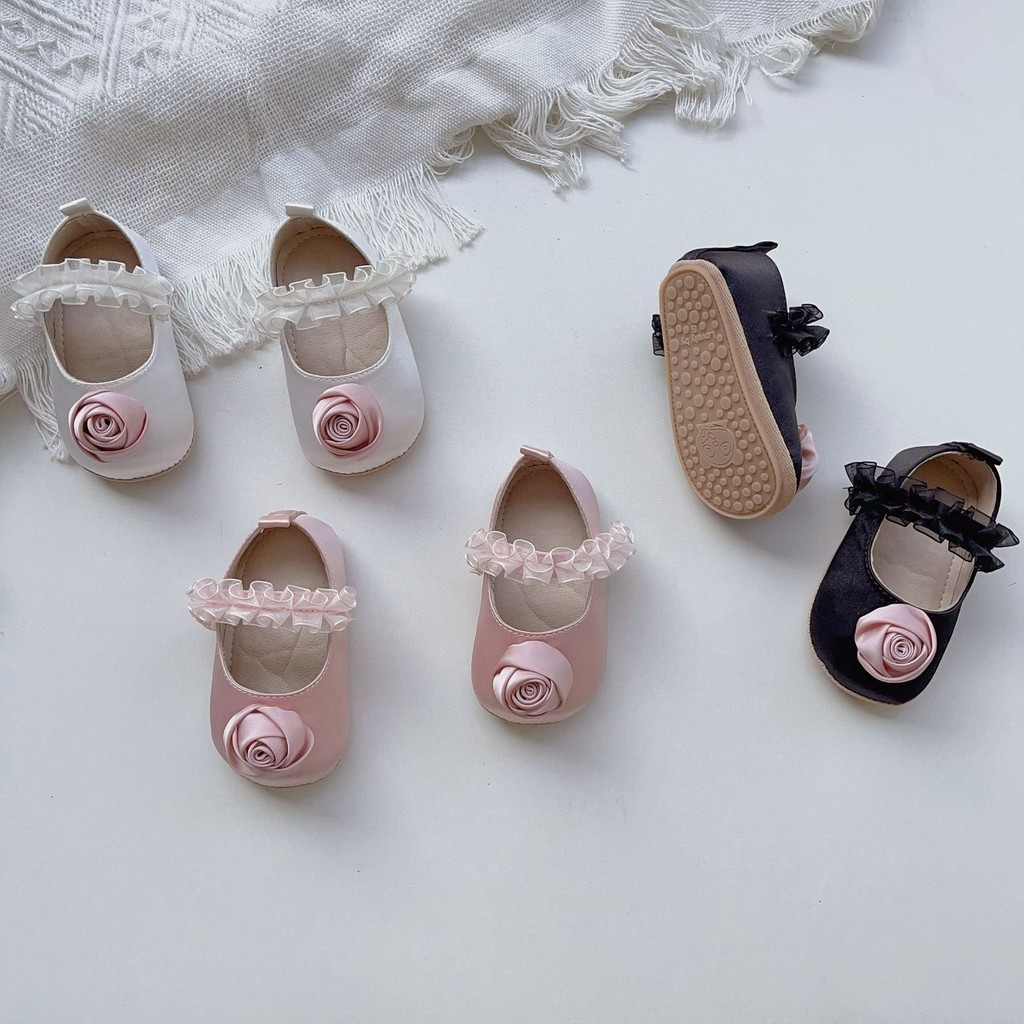 รองเท้าหนัง พื้นนิ่ม ผ้าไหม ลายดอกกุหลาบ สวมใส่สบาย แฟชั่นเจ้าหญิง สําหรับเด็กผู้หญิง