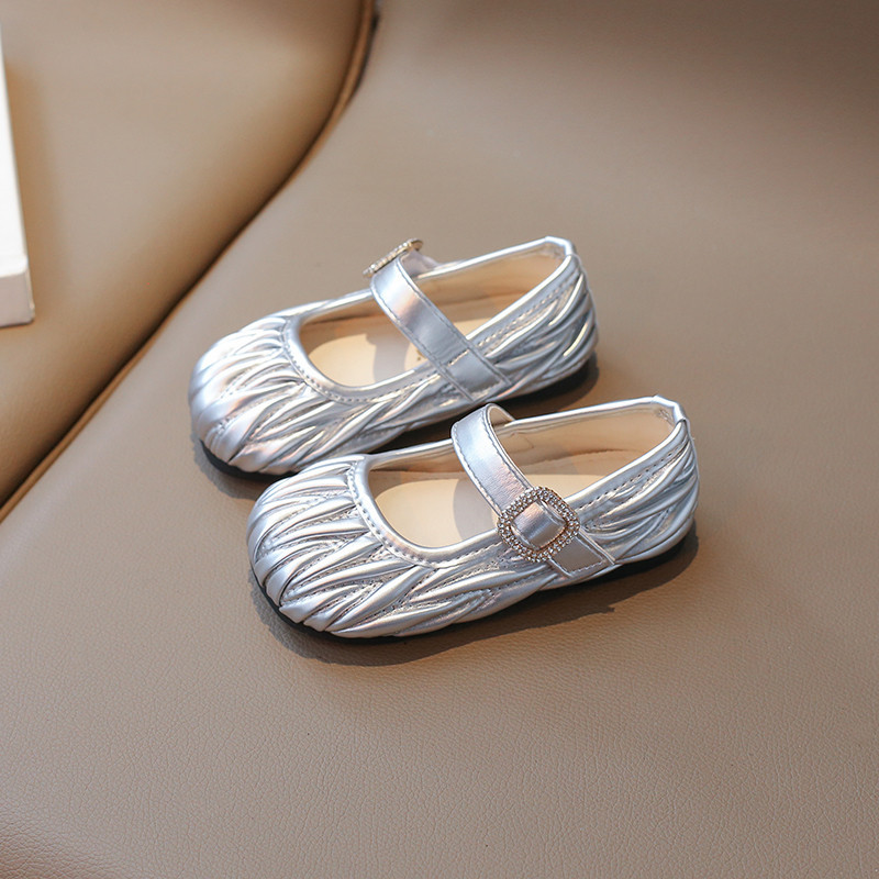 สาวรองเท้าแบนรอบนิ้วเท้าลื่นเด็กรองเท้าหนังลื่นบน2025ใหม่แฟชั่นเด็กรองเท้าหนังน่ารักหรูหราสําหรับสาว