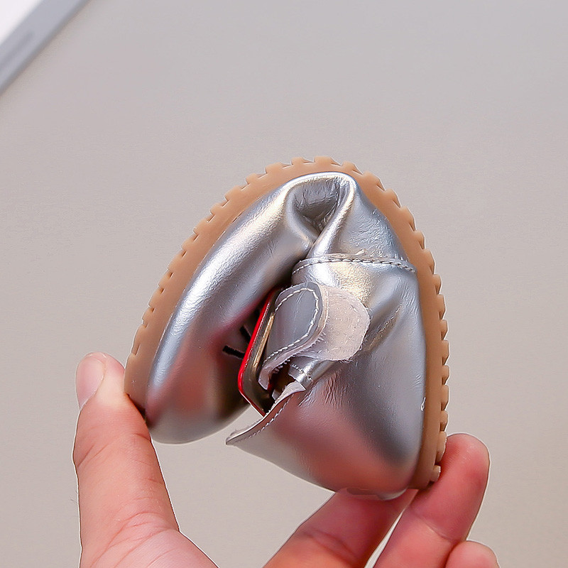 รองเท้าส้นแบนหนังเรียบง่ายสไตล์เกาหลีสําหรับเด็กทารกสีทึบรอบนิ้วเท้ากันลื่นรองเท้าเด็กพื้นนุ่ม 2-16 ปี