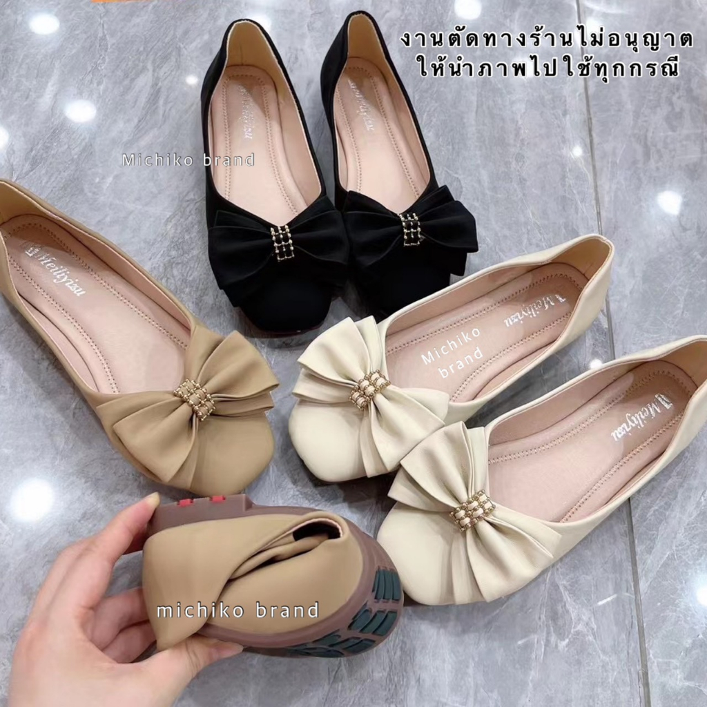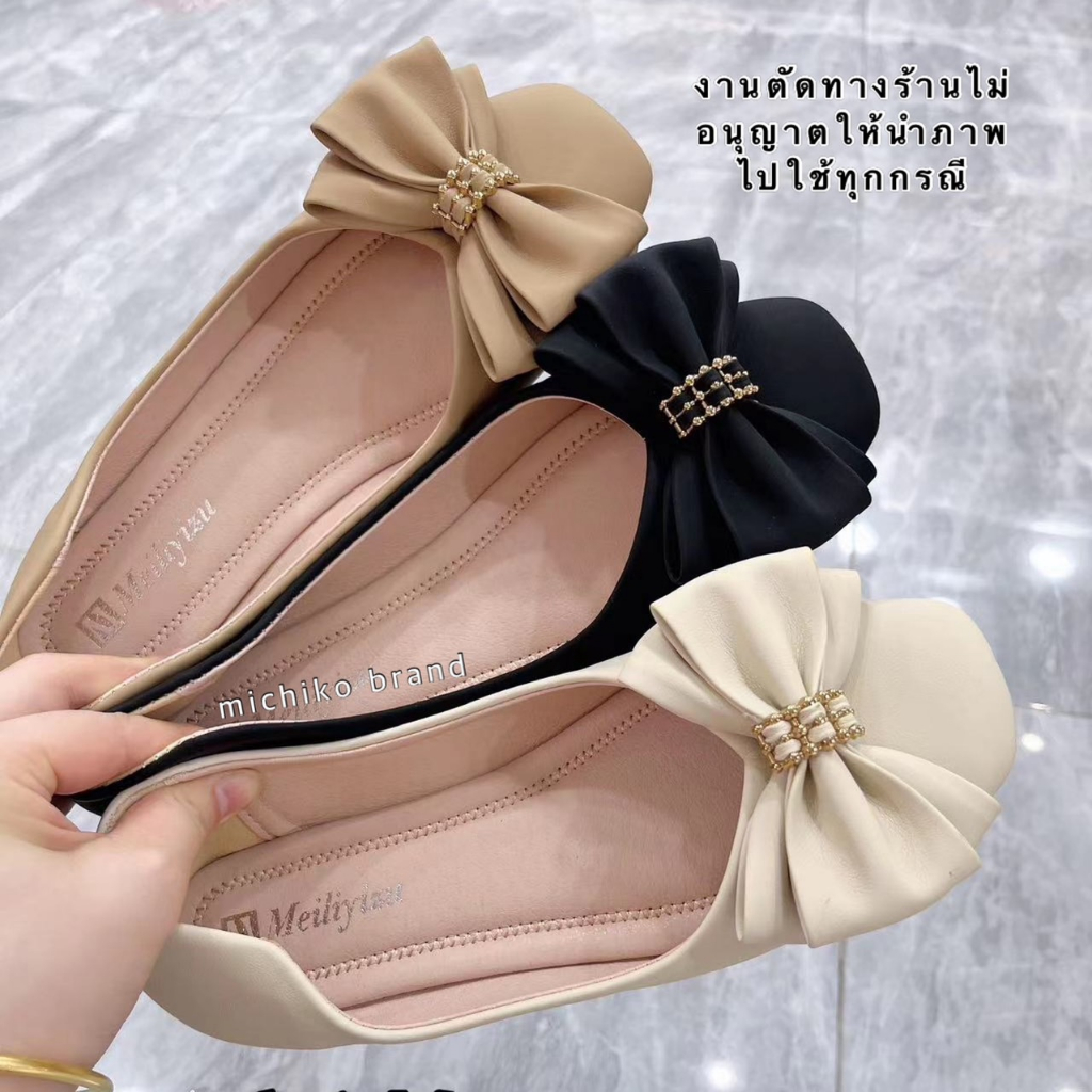 พร้อมส่ง💕รุ่นเจนนี่3สี หนังPUพรีเมี่ยม รองเท้าคัชชู (ส้นแบน) โบว์2ชั้นลูกคุณหนู : F881