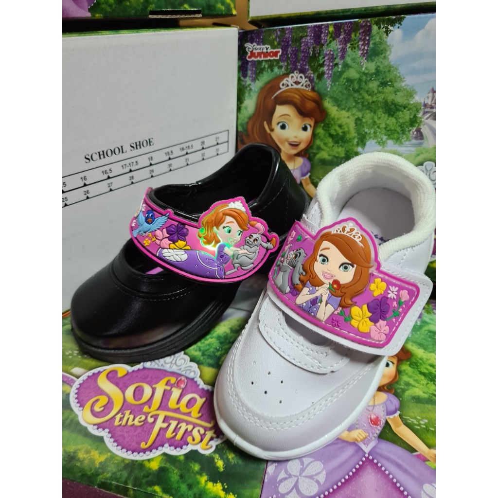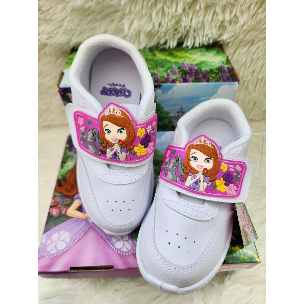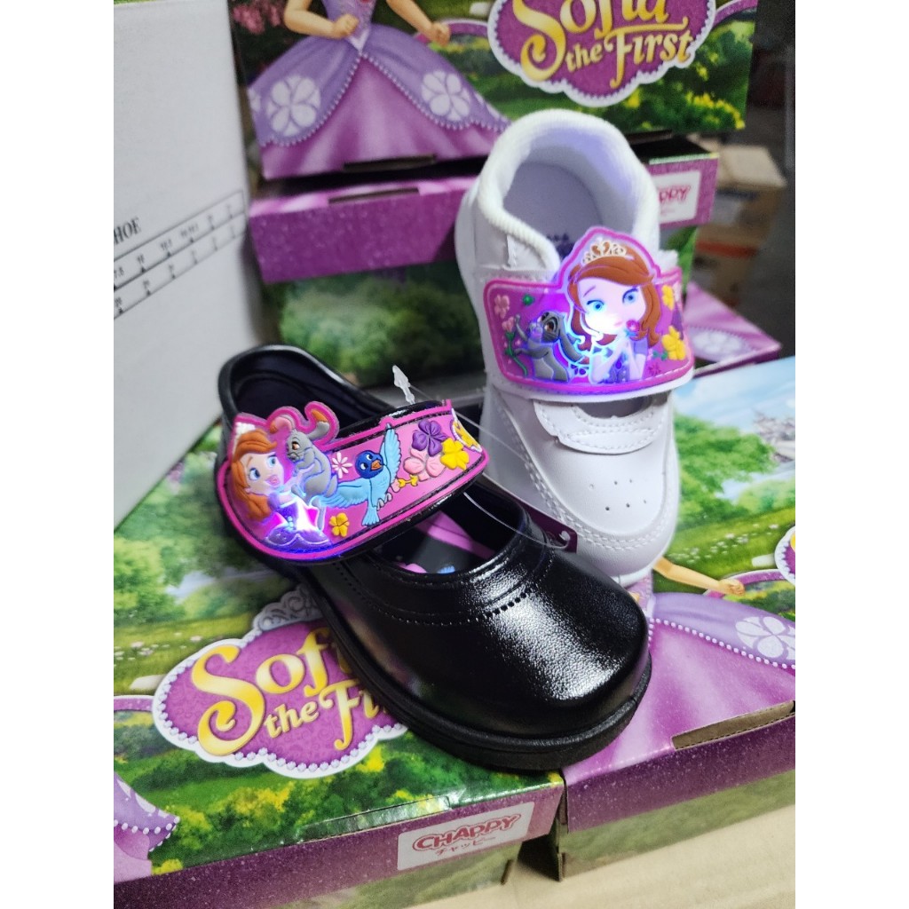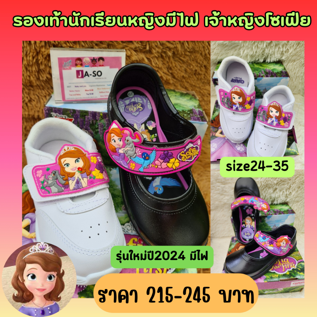 รองเท้านักเรียนหญิง ลายเจ้าหญิงโซเฟีย สีดำ พละขาว Sofia SF111/SF222 รุ่นใหม่ปี2024 มีไฟ.