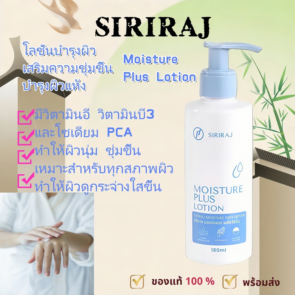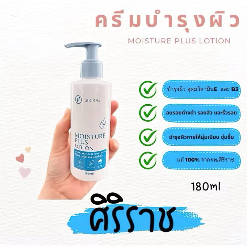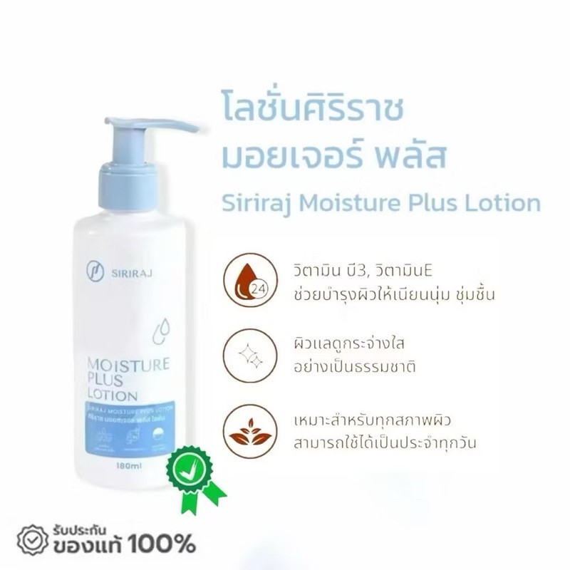 (ของแท้)ศิริราช ครีมทาตัว Moisture Lotion Plus Vitamin E B3 มอยซ์เจอร์ โลชั่น พลัส บำรุงผิวกาย180ml
