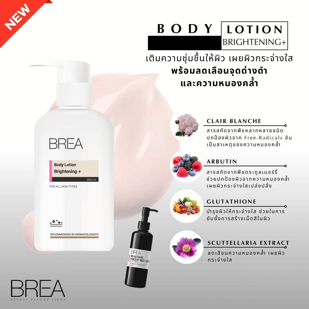 (NEW PACKAGING) BREA BODY LOTION BRIGHTENING+ โลชั่นบำรุงผิวกาย เนื้อบางเบา ขวด A06